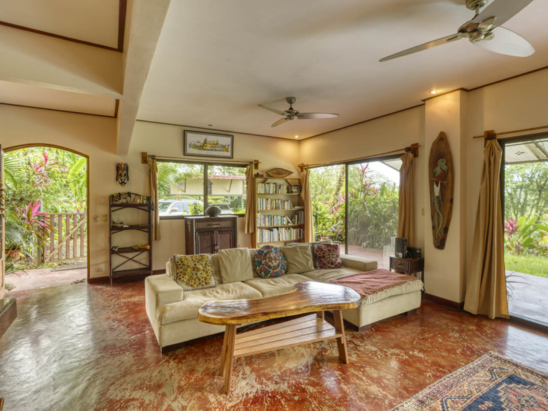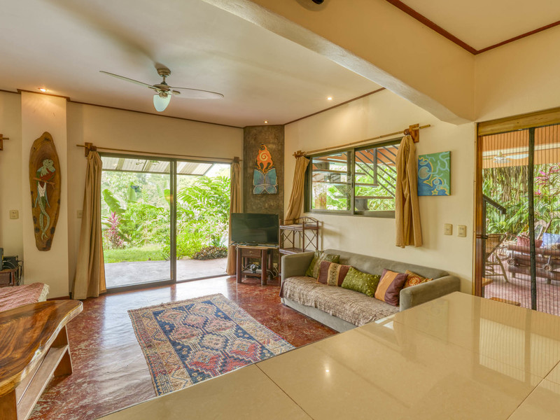This beautiful Uvita house for sale is located on a lush tropical property just steps away from the beautiful Morete River. It’s like living in your private tropical rainforest, surrounded by gorgeous mountains and tall trees. Along this scenic stretch of the river, a bird lover’s dream, you’ll find local wildlife such as toucans, monkeys, and the occasional sloth. There is also a nearby waterfall that is only a 15-minute hike up-river. This property features a 3-bedroom house and a separate guest home, which would be ideal for an investment opportunity, either as a bed and breakfast concept or rental all year long.