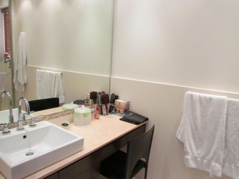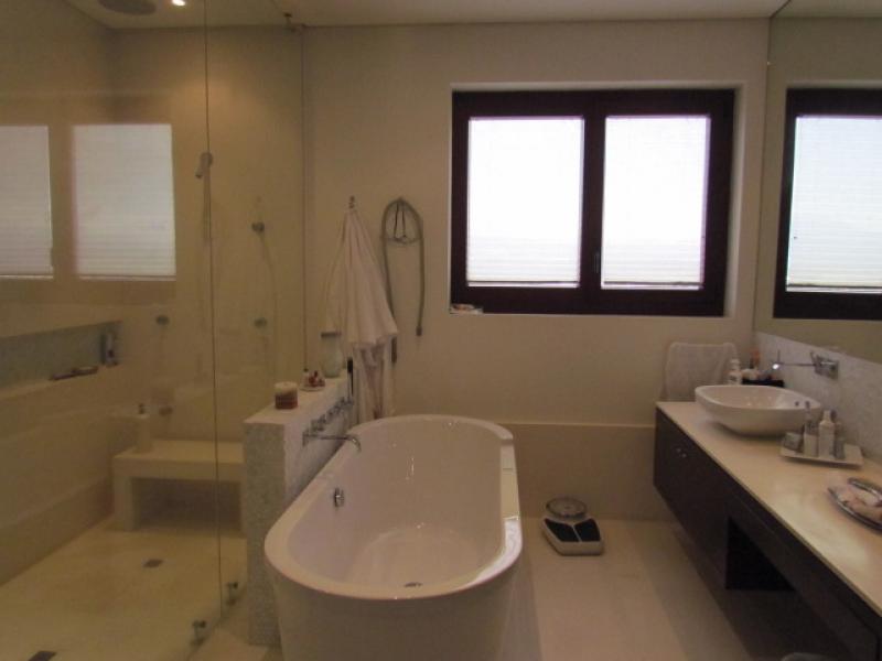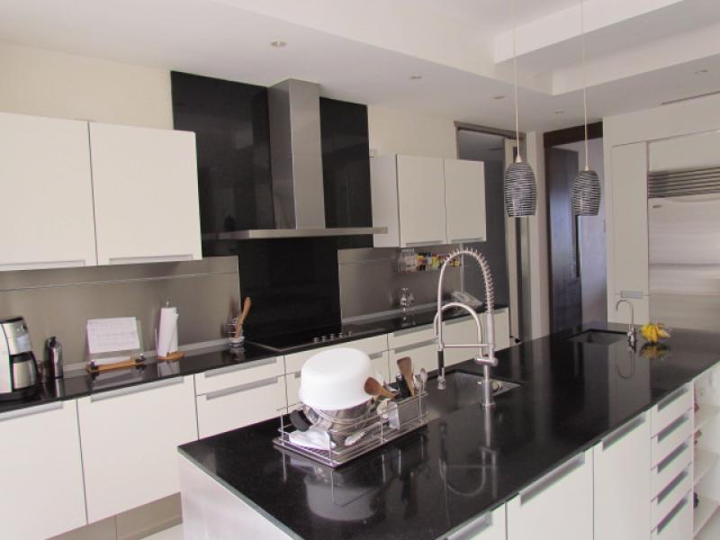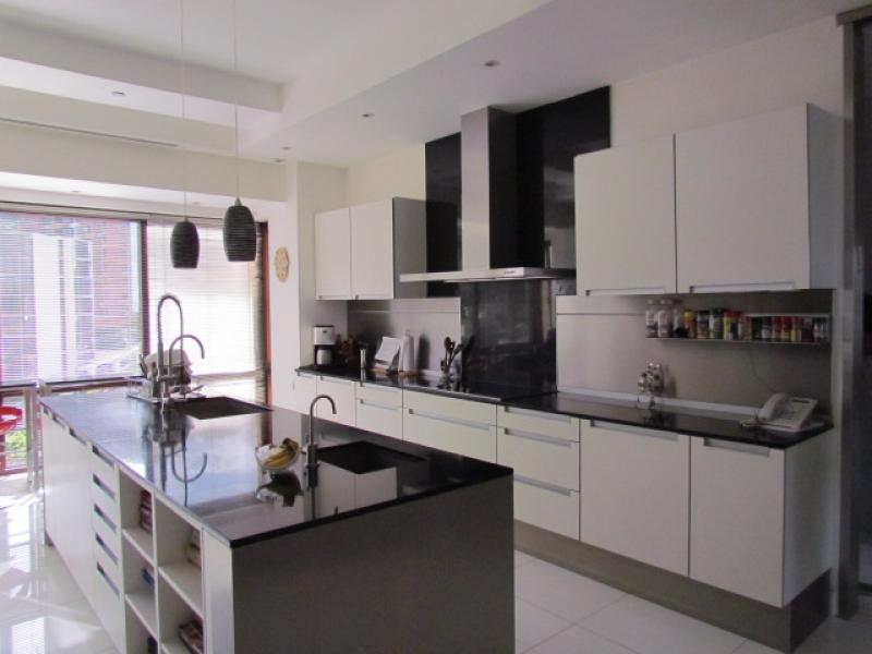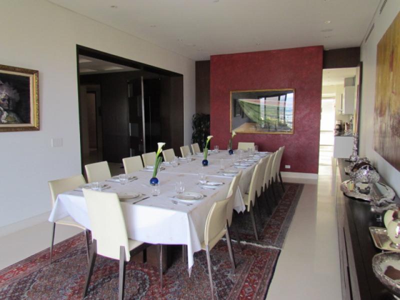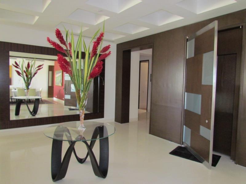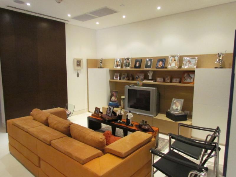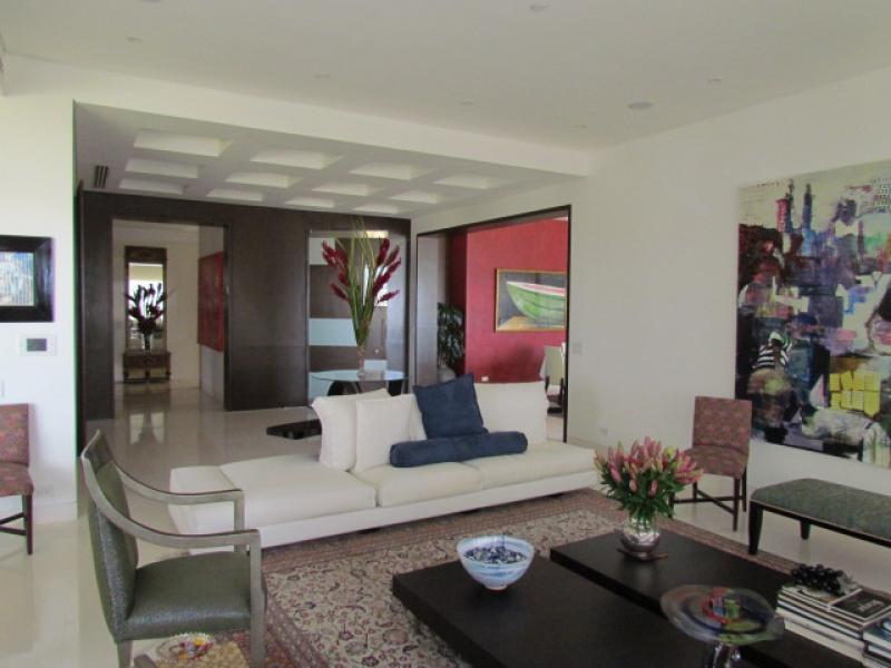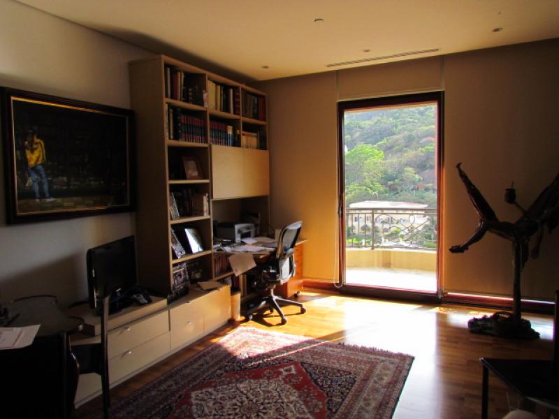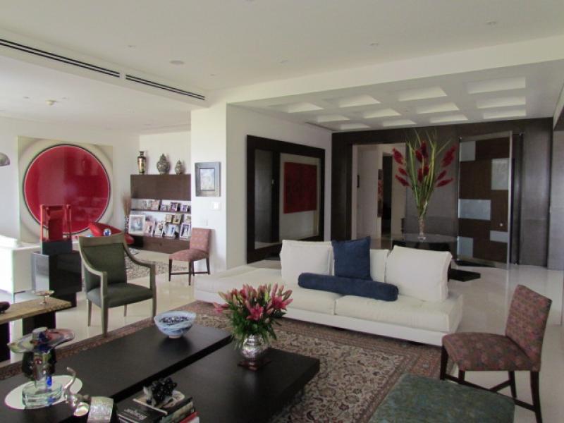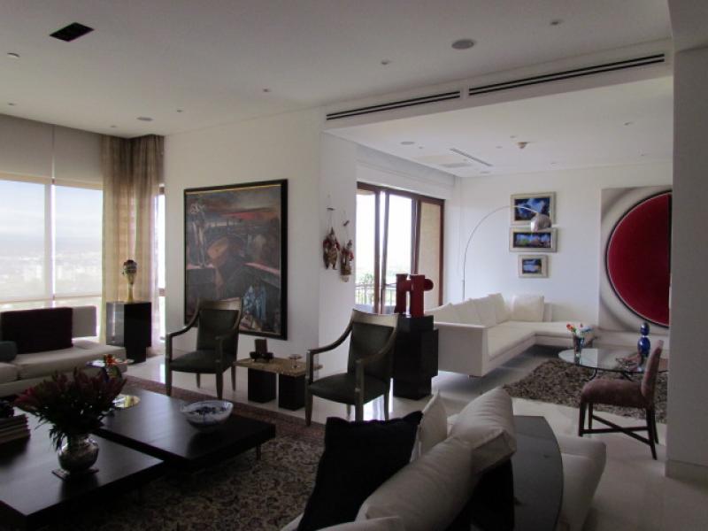 This particular apartment has an area of 415 m2 + 45 m2 of 3 parking lots for a total of 460 m2. 4 bedrooms, 4.5 bathrooms, staff bedroom and bathroom, a Private Elevator that goes directly to the apartment, Living room, Study, Dining room (marble floors), Kitchen with granite tops, Imported cabinetry, top of the line Appliances, Pantry, Guest bathroom, Bedroom hall, 4 bedrooms each with bath and separate walk-in closet (Almond wood floors), Office, Mini Theatre, Smart sound system throughout the apartment, Central air conditioning, 2 telephone lines, Internet, etc. Ample storage room in the garage area, and a service elevator. It's actually the most luxurious of the entire country. Visits by appointment only.