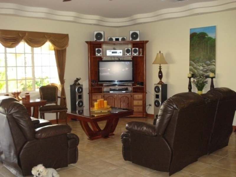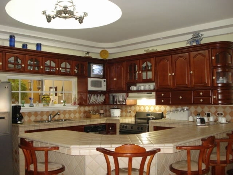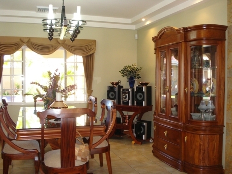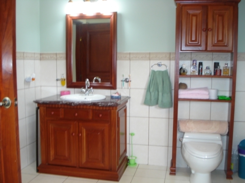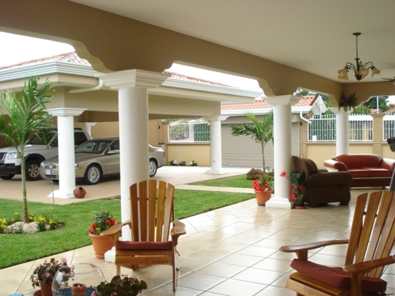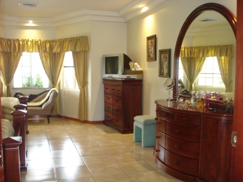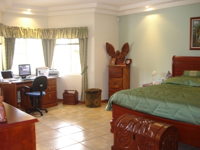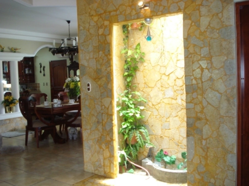 Casa de Una Planta con Piscina en Santa Ana. Luxurious 5-bedroom single-story house with fine exotic wood finishes that includes all kitchen and bathroom cabinets, high ceilings with curved and rectangular valance finishes, skylight with waterfall and four artisan columns that separate the kitchen and living room. formal dining room, heated pool, several terraces. Master bathroom with Jacuzzi and tempered glass shower plus 4 additional bathrooms. Separate garage for 6 cars or more Carrier brand 8-ton central A / C. Private and crime-free residential with controlled access and perimeter electric fence, plus laser sensors in the gardens plus 28 wireless sensors on doors and windows with 8 cameras with ADT coverage. Just 5 minutes from Multiplaza Mall, Banks, Restaurants, Forum 1 furniture and negotiable appliances. You pay only $ 50 dollars for maintenance, since the neighbors are organized with the issue of safety.