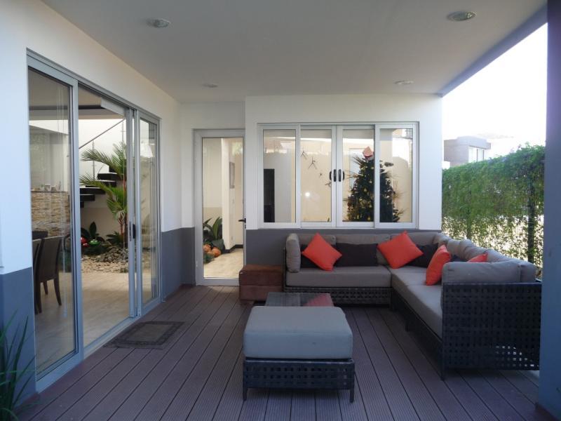 On a third level the house has a games room or family room. First Floor: hall, large master bedroom with closet with full bathroom, guest bathroom, family room, large dining room, beautiful interior garden between the living room and the dining room, the social area has triple height with natural lighting, large kitchen with island with granite countertop, includes template and grease extractor, pantry, nice covered terrace type deck connected to the back garden. Maid's room with full bathroom, laundry room, covered garage for 2 vehicles, cellar. Second Floor: TV room, 4 bedrooms, the main one with walk-in closet and closet with full bathroom with double shower, tub and double sink cabinet with marble top, large guest bedroom with double closet and full bathroom, 2 bedrooms secondary with closet with full bathroom each. Very good finishes and excellent distribution, mini split in the bedrooms. Maintenance fee $ 260 dollars, pets are accepted.