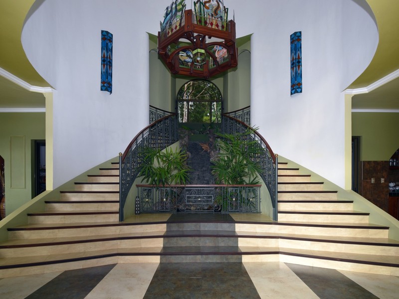 While the inside of the home is a study in elegance, the outside is equally impressive. You look across the lap pool and jacuzzi to a vast open valley view. For exercise, bird watching, or forest bathing you have over 55 acres of your own land, with three creeks, jungle, hiking trails and an open area for gardening.