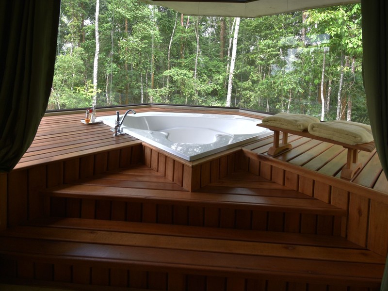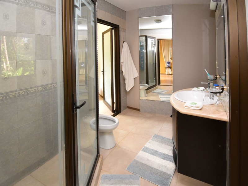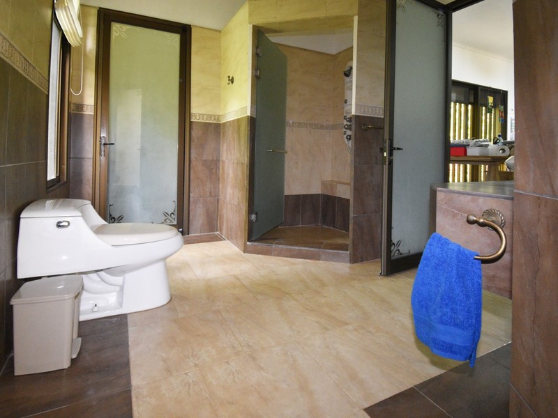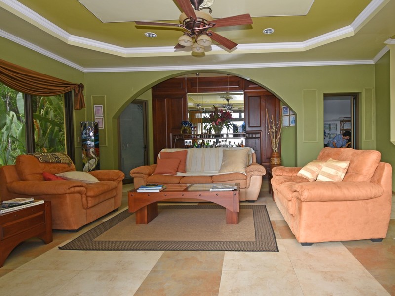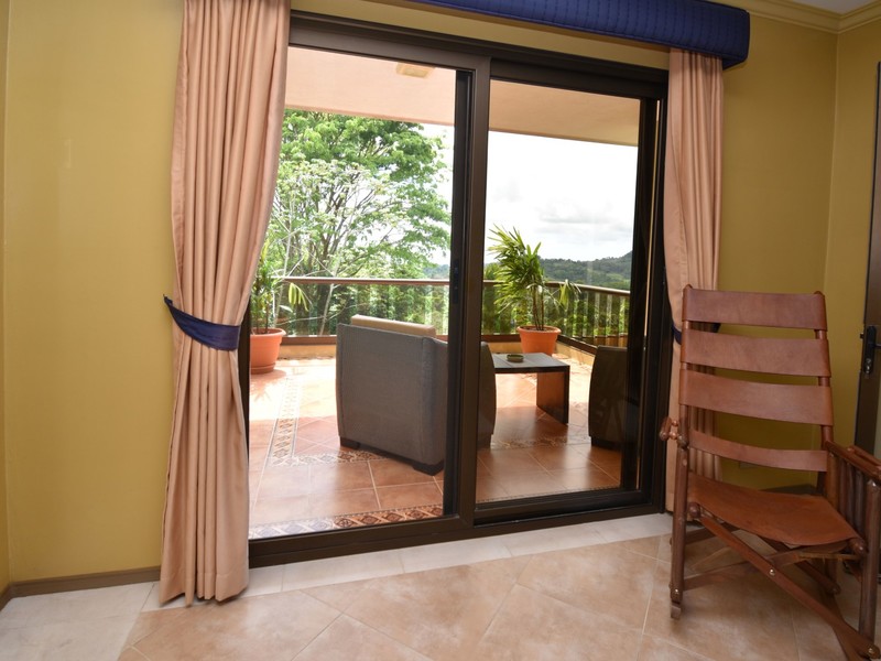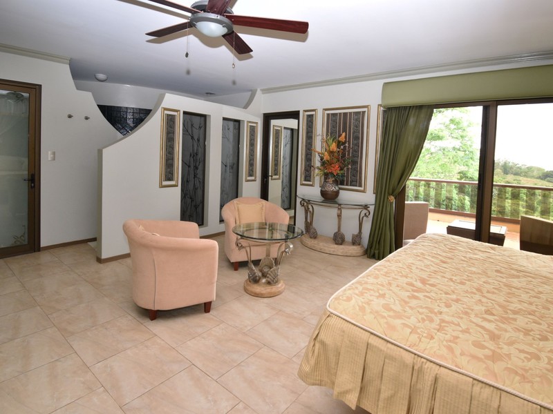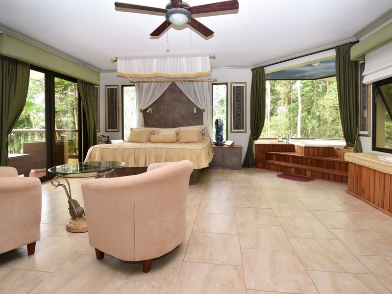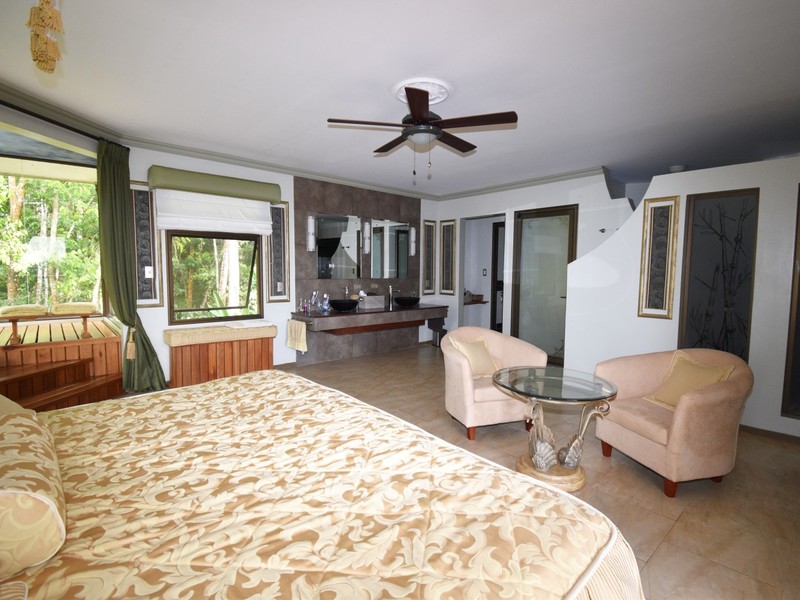 The two upstairs bedrooms are each master suites accessed separately from their own side of the staircase for complete privacy and separation. Both are luxuriously large, have their own bathrooms, and open onto wide terraces that offer you an expansive view of a jungle covered valley and a peek at the Pacific Ocean in the distance.