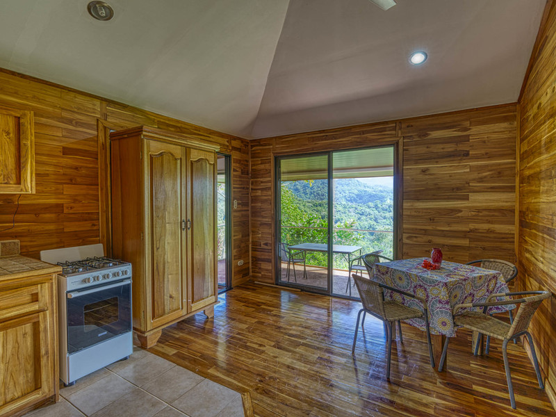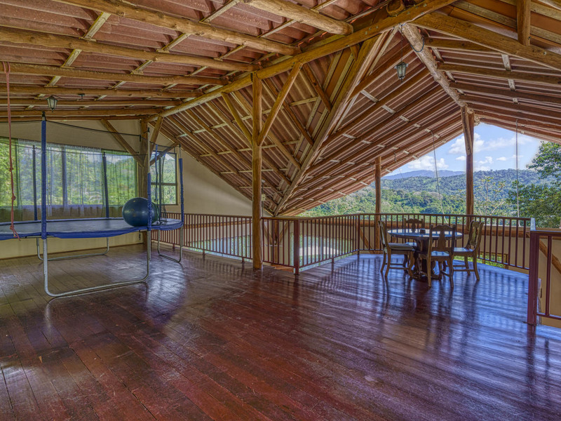 Located in a gated community 10 minutes from the beaches of Dominical, Casa Paz offers everything you’d want in a vacation home or investment property. There are 2 homes on the property, a 3 bedroom/3 bathroom house and a detached 2 bedroom/1 bathroom unit, which is ideal for renting or when out-of-town family visit for extended stays. Part of this property’s appeal is the use of fine woods in the construction of the house and the furnishings as the owner was a generational logger, carpenter, and professional artist. The second level of the main house was used for a dance studio for years can easily frame into two more bedrooms. The house features an open-air design and stunning mountain and jungle views.
