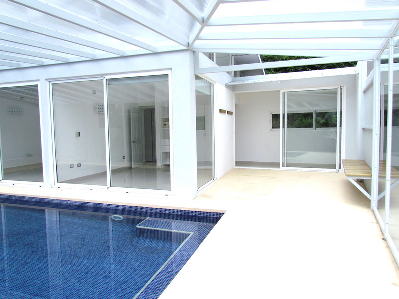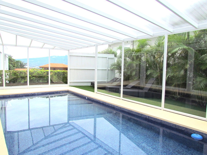Located in a really desired neighborhood of Escazú, independent new house for sale with panoramic view. This house offers 5 bedrooms with their private bathrooms. The master bedroom is located on the top floor and has a jaccuzzi bath tub, shower, walk-in closet and a huge terrace which benefits of a wonderful panoramic view. The huge living room is opened to the view with its surrounding windows. The kitchen is furnished and can be converted in an american kitchen. The house also offers a pleasant indoor pool that you can envoy the all year, garden and garage.