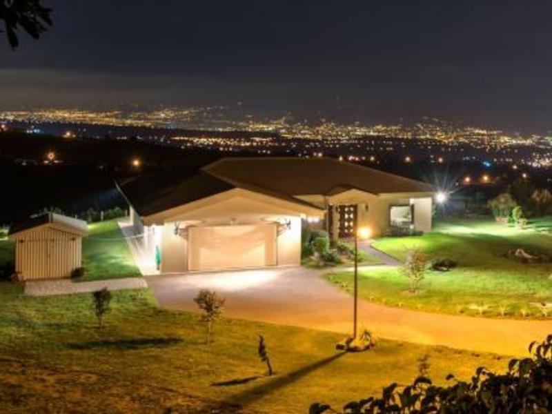 Magic, quiet, secluded and spacious property with spectacular views. This estate distills both the spirit of the mountains of Costa Rica and the essence of its spectacular landscape. Designer architect Joe Beatty carefully studied the sunrise and sunset of this site and designed this house to complement both environments. This beautiful house was built to measure in 2013 with a majestic combination of rustic luxury and modern mountain design and finishes, has spectacular views of the Poas Mountains during the day and the lights of the city of San Jose at night. The main house has 3 bedrooms and 3 bathrooms with two remote white coral gas fireplaces, a large patio with an outdoor kitchen, fully furnished.A large garage for ATV, garden tools and lawn mower. Next to the main house includes a little over a 1/4 acre lot with water / electricity / landscaping, pond with a unit shaped cut. The guest house suite has 2 luxurious bedrooms, 2 bathrooms, with the same wonderful views as the main house.