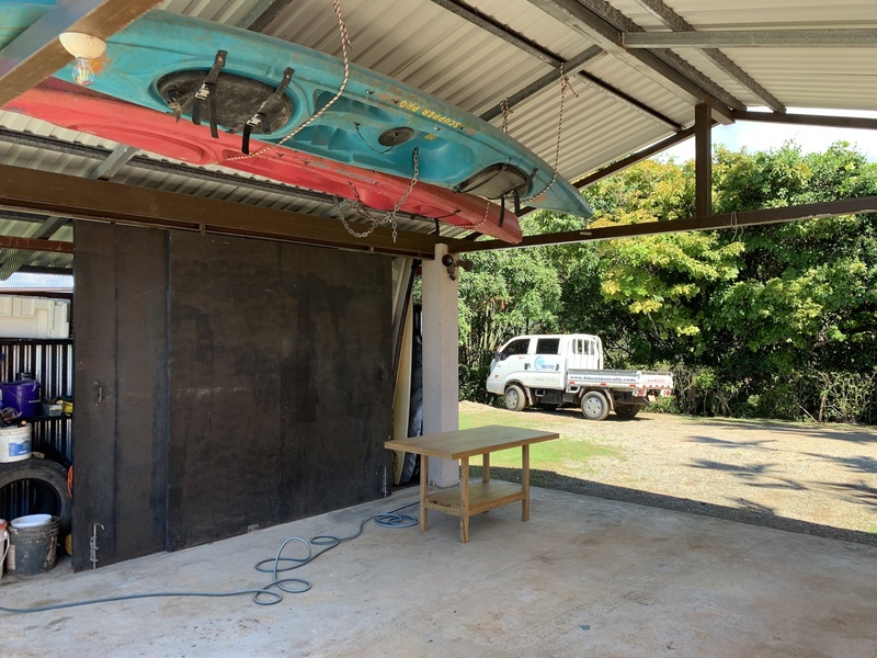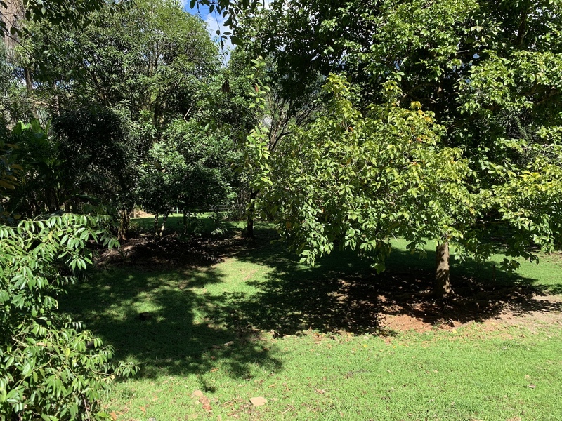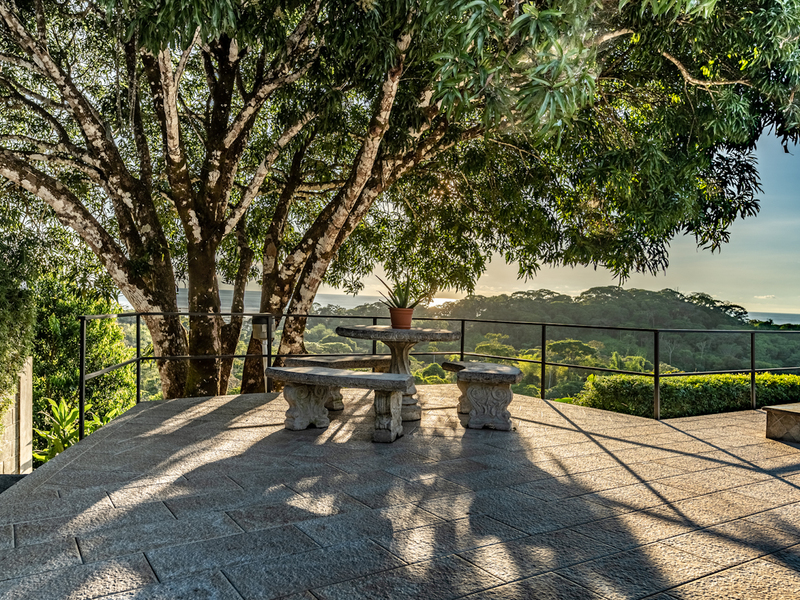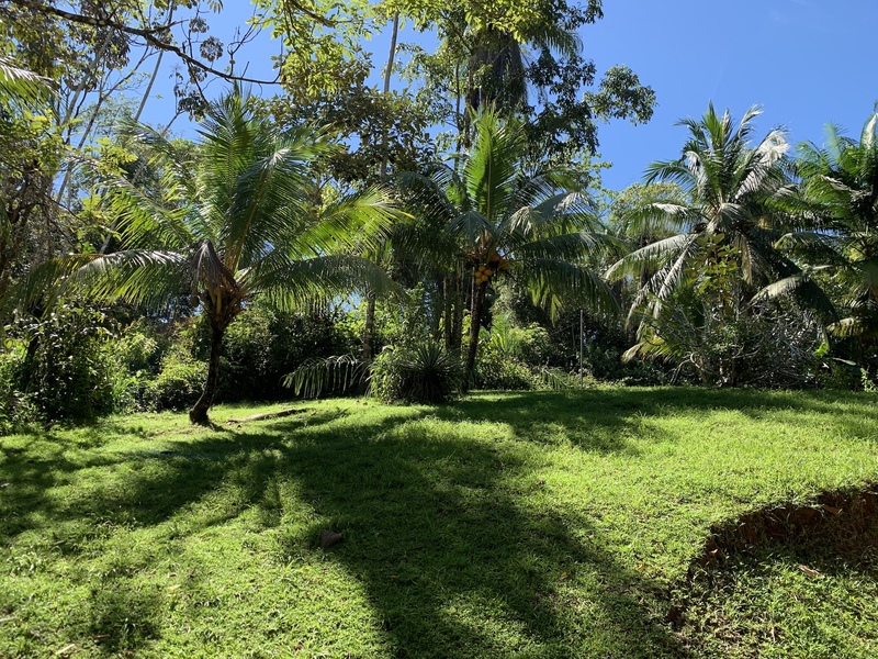 It starts at the automatic front gate with shade trees, bird of paradise, and deep-red heliconia. A gentle climb to the two-bedroom, one-bath gatehouse (yours to rent or make the perfect studio) opens into green fields rich with mangos, rose apples, mangosteen, bananas, lemon, coconut, rambutan, grapefruits, and kumquat. Then, get ready to gasp because just pulling into your parking lot is like pulling into paradise.
