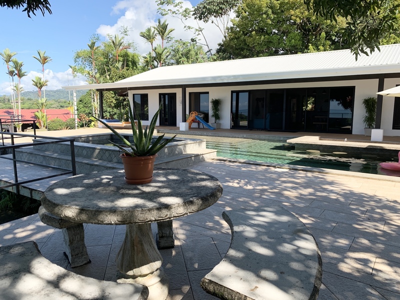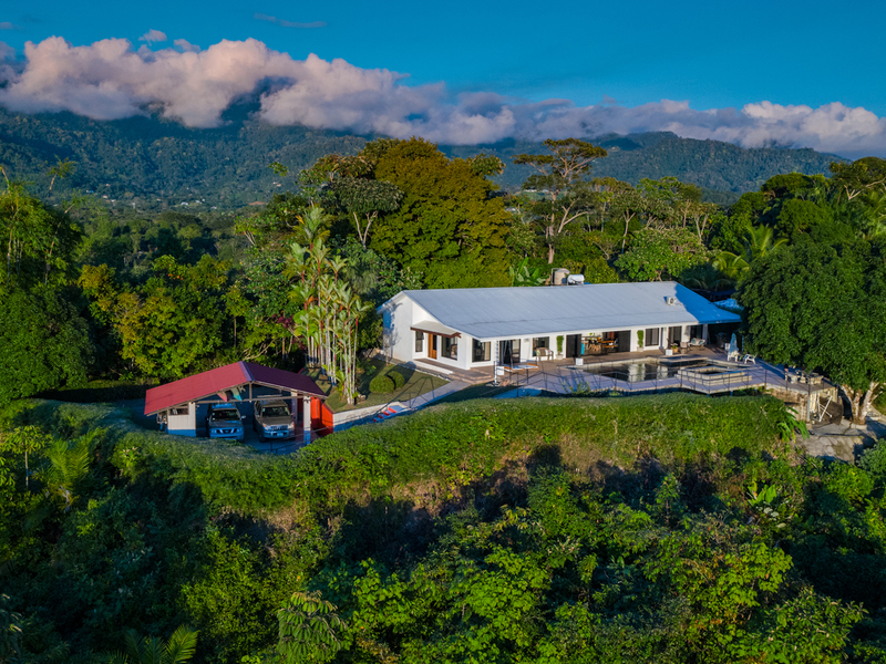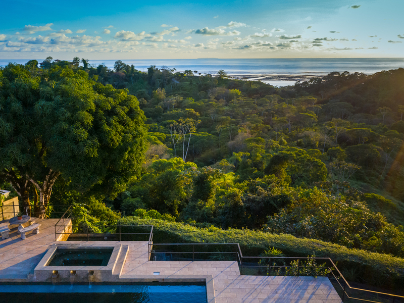 Park the car and choose the stairs or ramp to the big terrace, stone-tile pool, and generous outdoor living space where a six-panel sliding door brings the outside in. The in-pool bar, cool jacuzzi, two living rooms, dining area, kitchen, and fifth bedroom/office all look out at the mouth of the famous Terraba River & Pacific Ocean and just beyond, precious Caño Island. Bedrooms and bathrooms 1-4 offer lush green foliage and the sounds of the jungle.