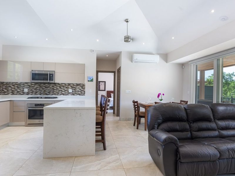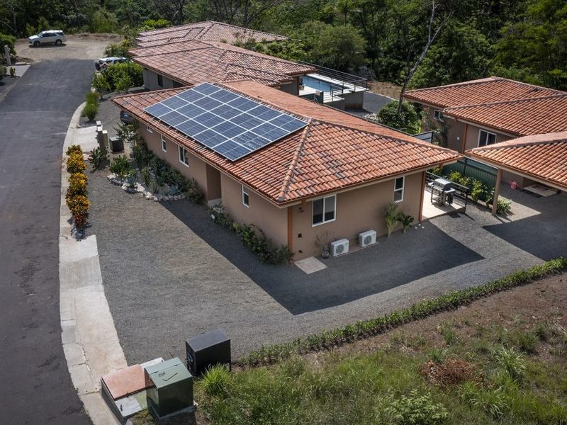 Welcome to Casa oasis at Mar Vista! Casa Oasis features a 3 Bedroom main house with a 2 Bedroom guest house and private pool overlooking a seasonal creek and surrounded by dry tropical forest. Fully furnished and tastefully appointed, these brand-new modern tropical homes are ready for move-in! Nature abounds in this section of Mar Vista and these homes are nothing short of a true paradise in the jungle. The main house measures 1,500 SF and features 3 Bedrooms and 3.5 Baths. The living, dining and kitchen areas are all centered in the middle of this home and the large sliding doors lead out to an amazing private pool and covered terrace area. The master bedroom features a spacious vanity area and walk-in shower. The guest bedrooms have their own ensuite bathrooms and there is also a laundry room. The guest house measures 1,300 SF and features 2 Bedrooms, 2 baths, living, dining and kitchen area. The master bedroom in the guest house features a stylish garden tub and walk in shower. The guest bedroom has its own bathroom and access out to the deck. There is also a large laundry room and storage area. The sliding doors lead out to the amazing teak deck that is at the tree canopy level and overlooks a seasonal creek. This is the perfect place to relax and enjoy the wildlife and sounds of nature. This property would make a great full-time residence or investment property. There are many notable features of these properties such as energy efficient steel frame construction, solar panels, low flow irrigation system, high efficiency mini-split AC units, dual pane Jeld Wen windows. The HOA fees are only $84 per month and provide you with all of the benefits of living in the gated community of Mar Vista.