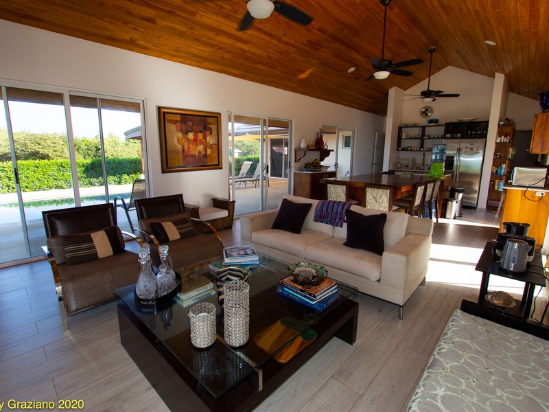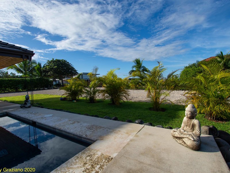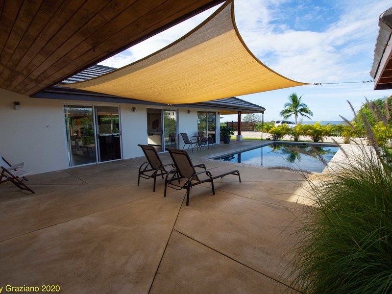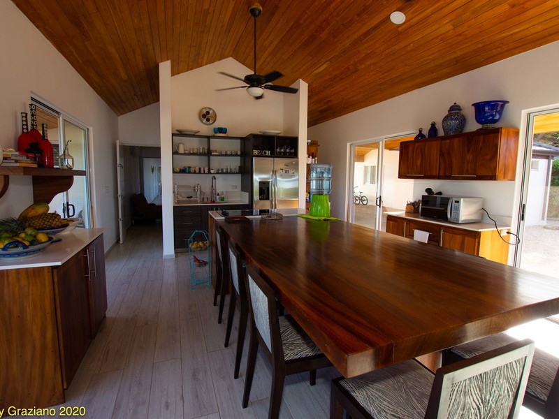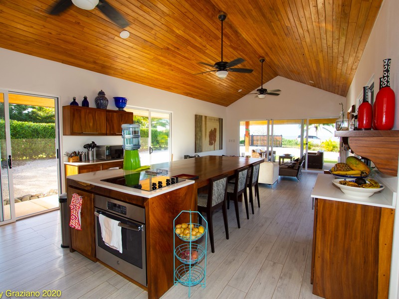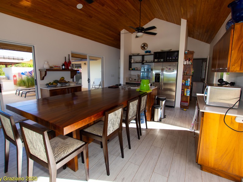 Painstaking Attention to Detail Casa Manomarie was designed with a tropical beach lifestyle in mind. This isn't a house it is a home. There is a great difference between the two. The owners of this home live here full time with their children here in Playa Negra. Manomarie is one of the few homes in the area that was built for living and, just as important, built to be a first class rental home in the future. There is a smooth and flowing floor plan that creates private spaces for all of the bedrooms and especially the pool front master. The rear master bedroom has it's own private porch and enjoys our glorious sunrises. There are two more adjoining rooms that are for each of the children and include bunk beds and desks in each. Prior to reaching the bedrooms and adjacent to the entertainment room there is a full bedroom sized office space that could be, in the future, used as another bedroom to improve rental income or keep it as it is if you are a digital nomad. The spacious carport will accommodate four cars under roof. To the right are two ample storage rooms and maid's quarters and then to the left is the main covered entry which guides you into the kitchen or the entertainment room. A large kitchen with an enormous seating area is surrounded by glass which brings in so much light and a direct view to the pool. Here, glimpses of the ocean are had as well. Finally, connected to the kitchen area is a comfortable living space and another living space just outside. Both enjoy ocean and pool views in this masterpiece home.