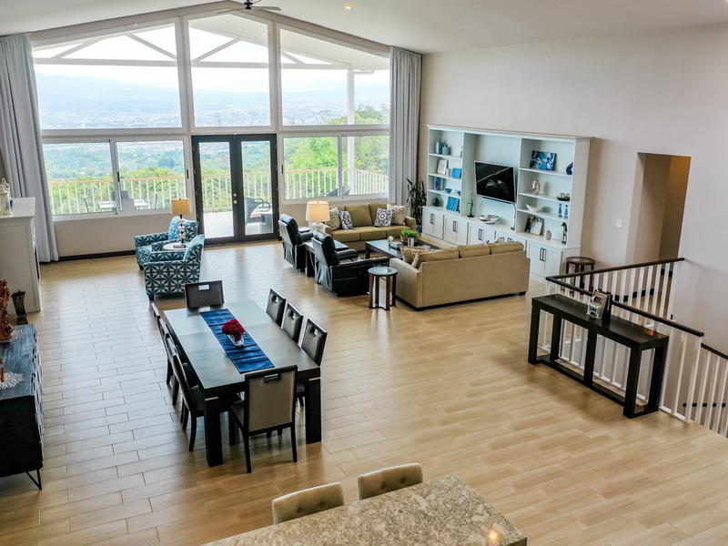 Enjoy living in a beautiful luxury home overlooking the entire Central Valley of Costa Rica. The property is located high in the mountains of Escazú, at an elevation of 1,444 meters. The temperature is cool and pleasant year-round. The second level has a very large open design with 4 bedrooms and 3.5 bathrooms. The kitchen is very spacious with a center island for entertaining and preparing food for family and friends. All the bedrooms have their own bathrooms. The Master bedroom has the best view of the house, including a large bathroom and his/hers walk in closets. On the first floor you will find a second kitchen and living room with 2 bedrooms and 1 bathroom, perfect for Airbnb, guests, or in laws. There is a carport that leads to the second floor for groceries and easy access, while the closed 2 car garage leads to the first floor with stairs to the second. Adjacent to the house are elevated garden beds for all the herbs, lettuce, and vegetables you will ever need for a large family. The house is truly one of a kind, you must be there to experience its greatness. Call us for a showing today!