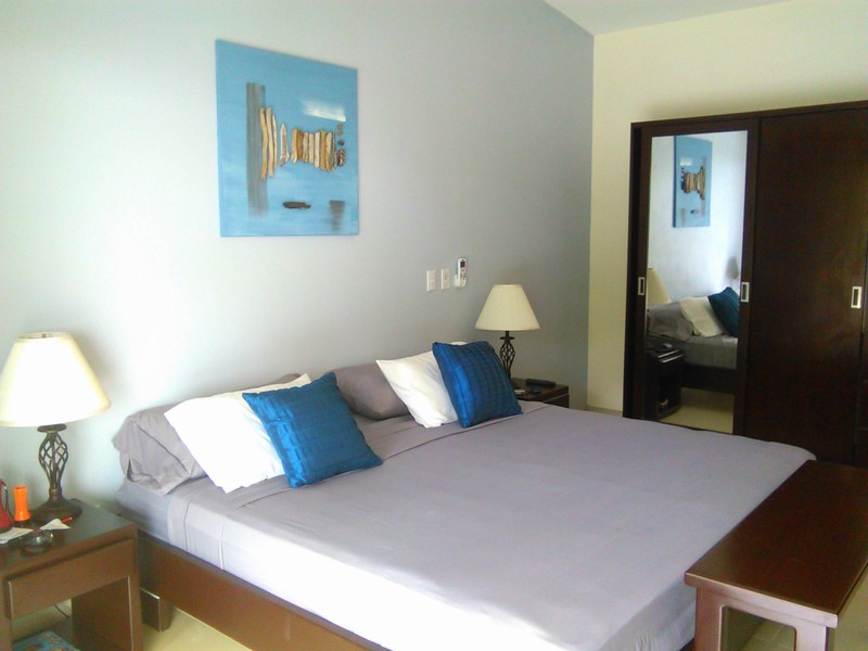 The secondary home is located on the upper plantel, finished with a simple design. The kitchen and living area are one open space, finished similarly as the primary home. The master bedroom holds an en suite bathroom with duel sinks and enjoys an ocean view. The guest bedroom with en suite has a private access outside the living area and direct access to the patio. The reception area/office is connected to the secondary home, providing the perfect place to check in guests.