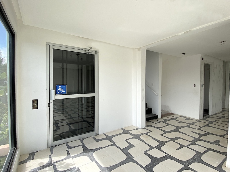 El primer piso tiene un área de recepción, gran espacio abierto, ascensor y baño. El segundo piso tiene un gran espacio abierto, oficina y vestuarios. La tercera planta tiene un espacio abierto, vestuarios, una pequeña zona de cocina, 2 baños y una gran terraza. Cumple con las normas de accesibilidad para discapacitados.