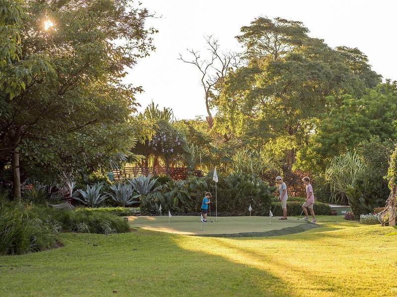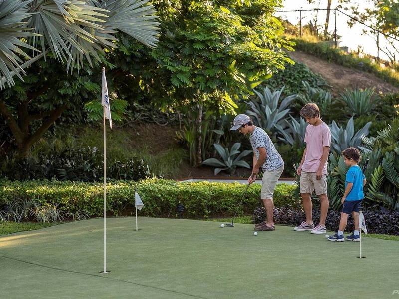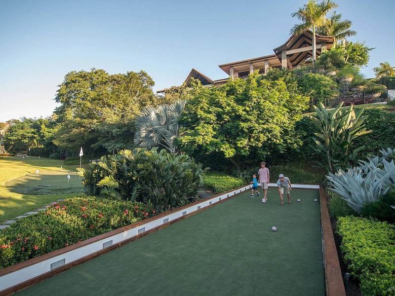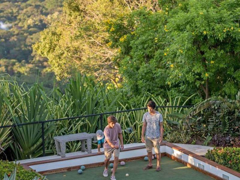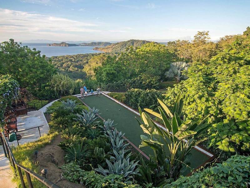 Extensive orchard: Oranges, Lemons, Starfruit, grapefruit, sour soap, water apple, sour guava, avocado, mango, caimito. Many trees provide shade; almond, cashew, golden shower tree, plumerias, and many herbs allowing the on- site chef to pick fresh fruit daily for the all-inclusive guests. There is a Bocce court on the lower level with a spectators elevated seating area that also overlooks the golf greens. There are artistic statues off the green and a fountain off the villa terrace all adding to the total ambience of the villa compound.
