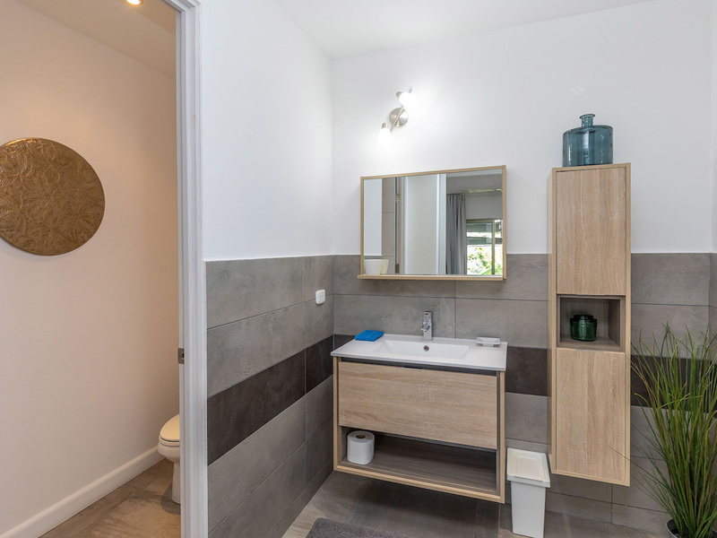 Going to the lower two levels – Are 3 apartments. 2 apartments are single bedrooms and last apartment is a 2 bedroom. Each with their own private entrance, patio, and fully equipped kitchen. All have a seating area with a sofa, flat-screen TV, washing machines. All the bathrooms come with shower and hairdryer. A refrigerator, oven and stovetop and coffee maker, complete each kitchen. Here every detail is well thought, and executed perfectly as witnessed in the decor, right down to decorative towels and linens. This Villa comes fully furnished and turn key ready.
