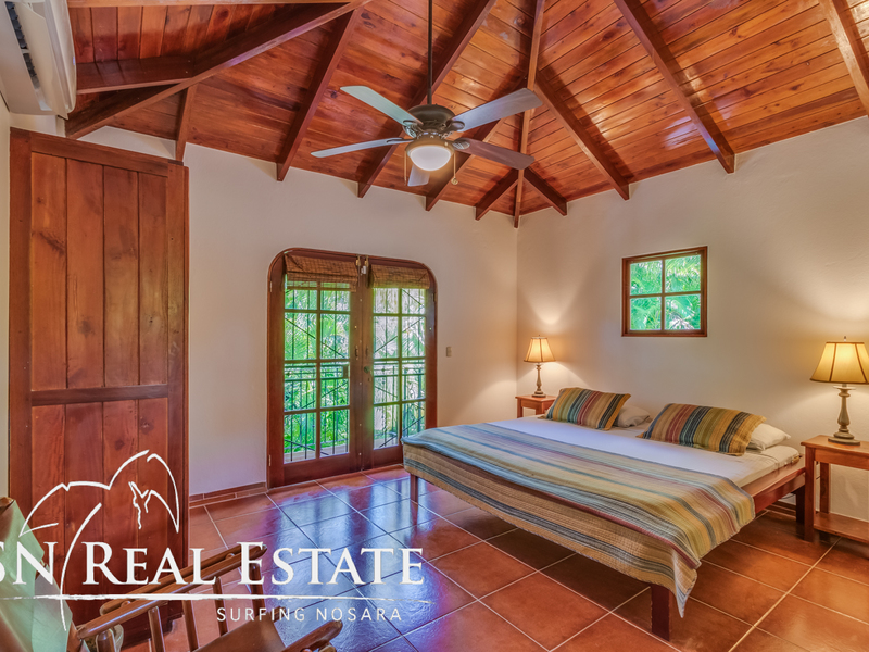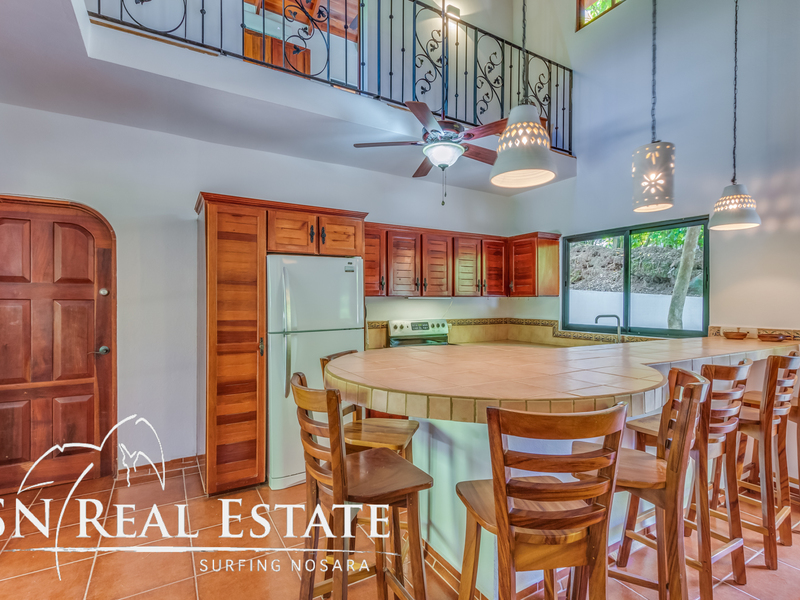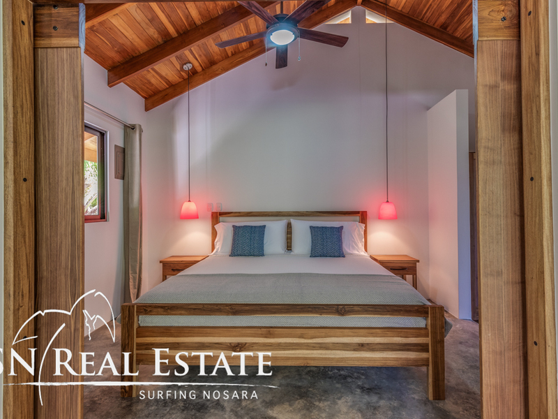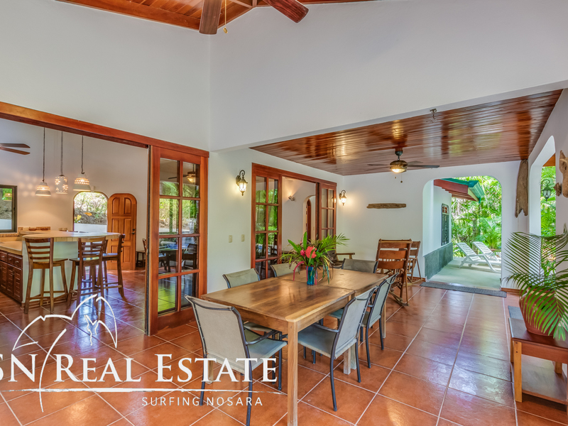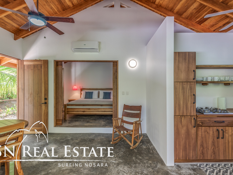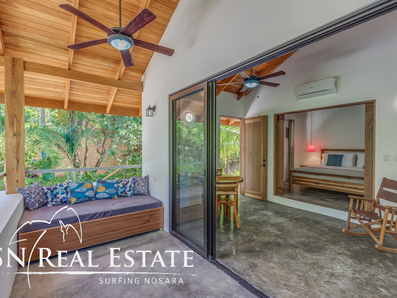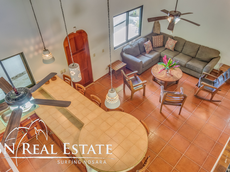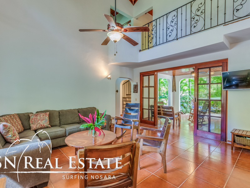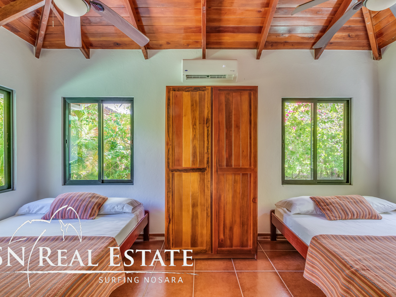 Incredible value for an income producing property in the sought after, beach front gated community of Guiones Beach Club. You and your vacation renters will enjoy the comfort of 24/7 security, gated single entrance, cameras throughout the neighborhood and roving guard support. The home has been remodeled in the past two years to a comfortable five bedroom main house and most recently constructed modern one bedroom home and a two car garage & storage area. The inside of the home boasts open architecture with high ceilings and plenty of space for at least ten guests. The new studio can accommodate another two guests or could be used as an owner's apartment while renting the main house. The open floor plan allows the property to host large groups and families comfortably.