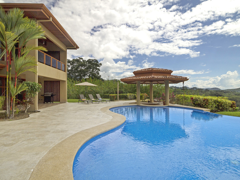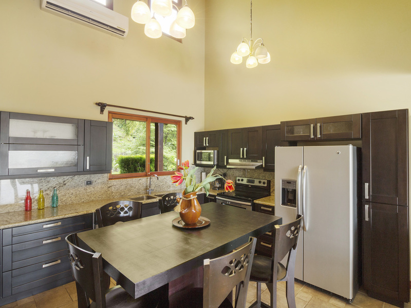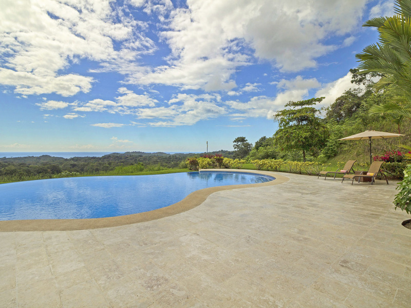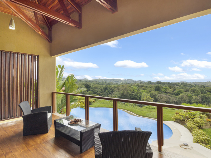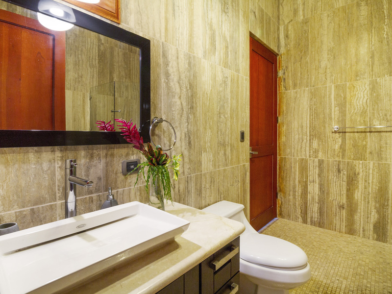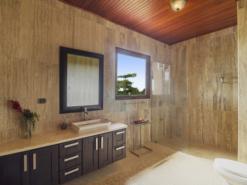 The second floor is the grand master bedroom and ensuite bathroom, accented with custom flooring and ceilings crafted from local hardwoods. This gorgeous private retreat features a huge terrace that overlooks the pool and has beautiful views of the Pacific Ocean and the jungle valley below. The luxurious master bathroom has beautiful floor-to-ceiling custom tile work and a huge glass shower - a spa-like experience!
