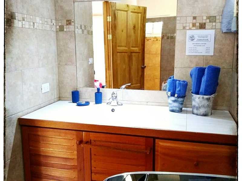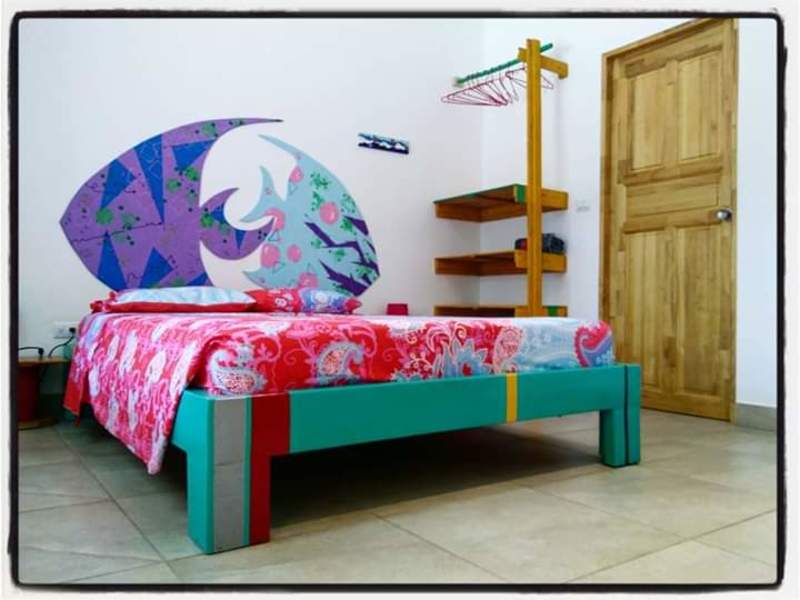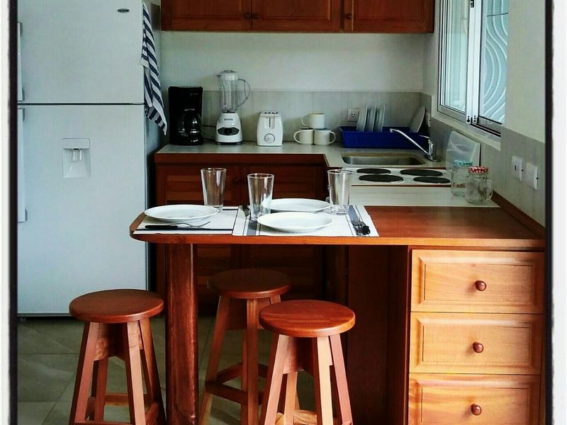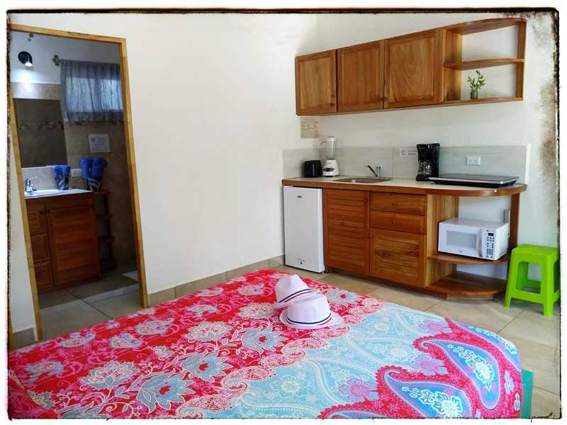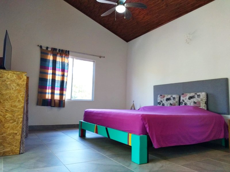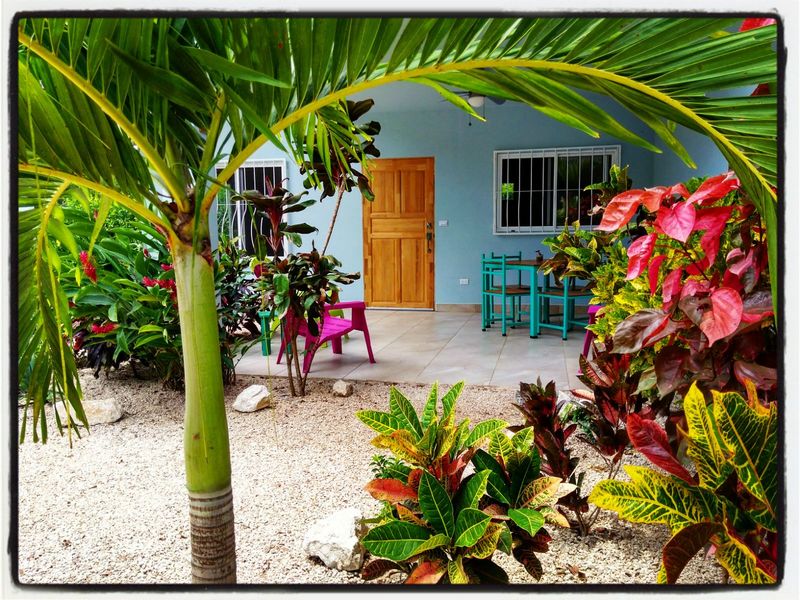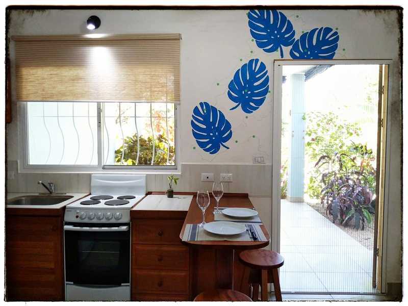 Built in 2017, the building is two stories. The ground floor features three separate one-bedroom apartments, each with one bathroom, a fully equipped kitchen, and a private outdoor patio. Two of these apartments could be rented out as a single unit with an adjoining door. All apartments are equipped with orthopedic mattress, ceiling fans, hot water, drying rack, screened windows and doors, TV and security box. In addition, two of the apartments include an automatic washing machine and the largest is equipped with a/c.