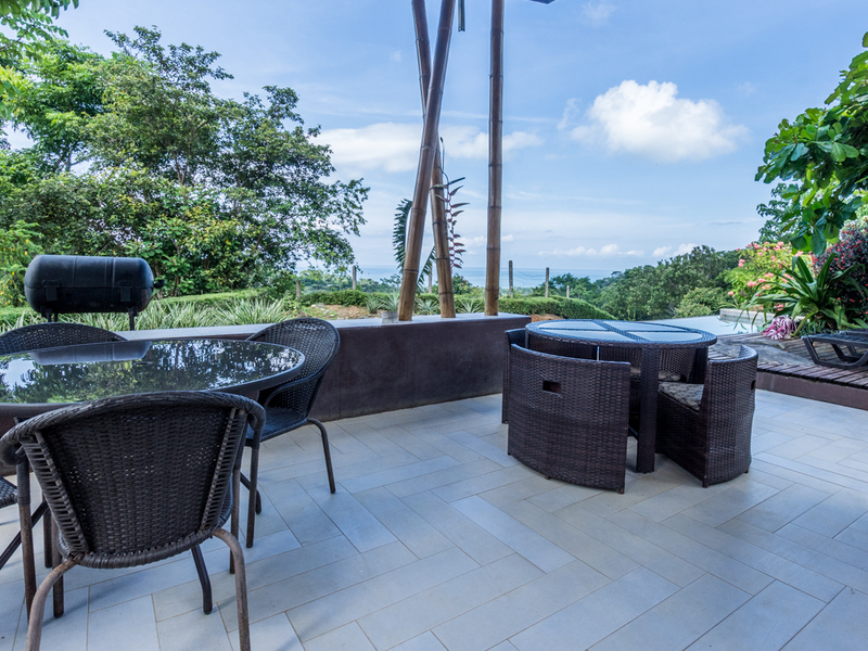 Enjoy your day by the beautifully tiled infinity pool which overlooks the ocean and has a large outdoor covered rancho with tables and BBQ area.