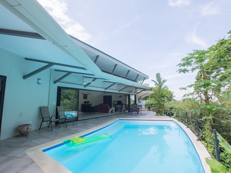 Below the pool is another newer contemporary home with two bedrooms, two bathrooms, a laundry room, lock-up storage room and large pool overlooking the jungle and river. It has a large open concept great room with gourmet kitchen and living room and solar for hot water. The home has great rental income and offers privacy and beauty.