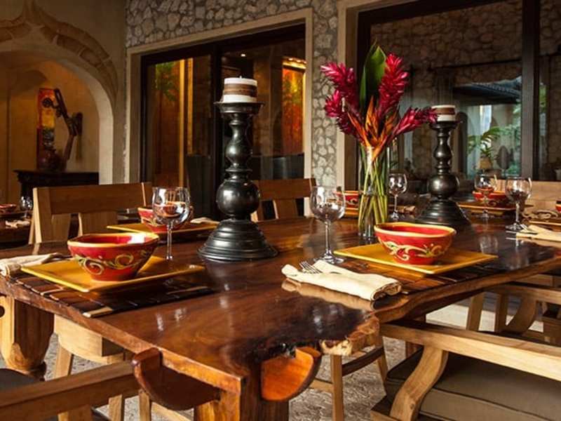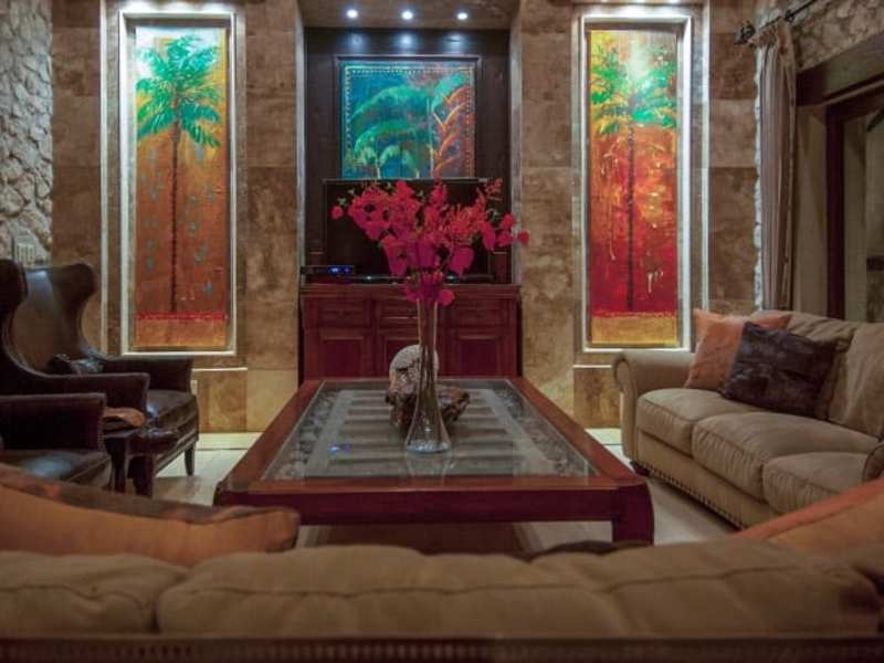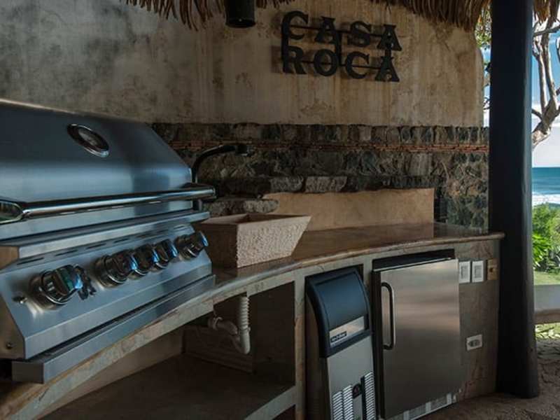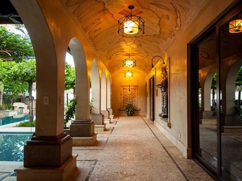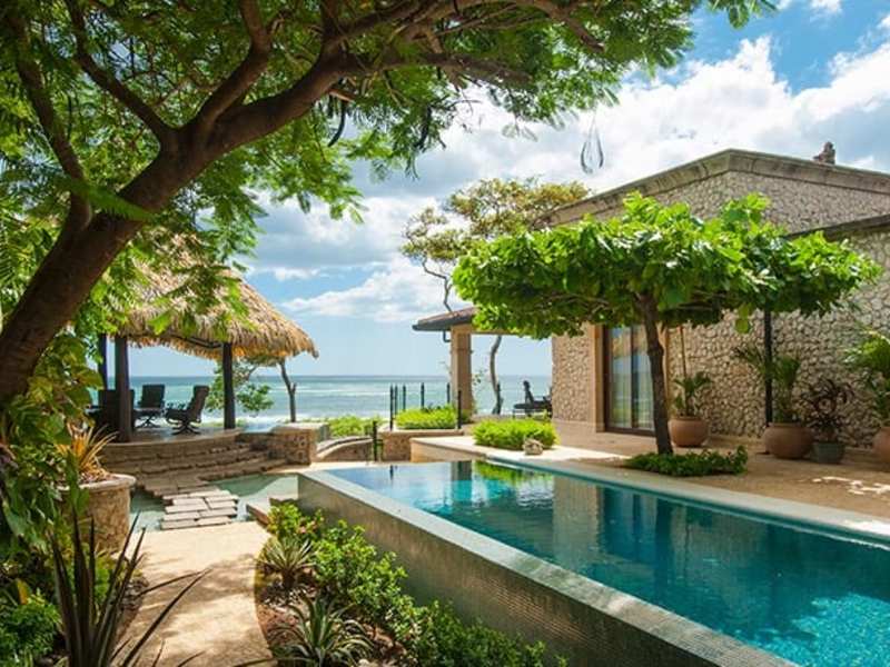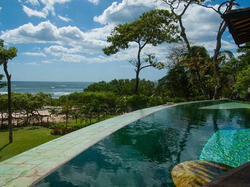 Magnificent luxury estate, with unprecedented master craftsmanship, within this property’s beautifully landscaped 13,700 sq. ft.(1250 M2) beach-front location. The 7 bedroom, 7.5 bath mansion is very private with architecture that is both bold and introspective, old-world but tropical. Each bedroom has direct access to a private en-suite bathroom. The gates open to a reveal an architectural gem on a stunning white sand location. It’s perfect for indoor/outdoor entertainment but also has cool intimate spaces framed by old-world stonework, cascading fountains and refined tropical landscaping. The beach-front infinity edge pool and heated jacuzzi abut a shaded tropical pavilion with a circular dining table, wet bar,bbq pit and front row seats to the best sunsets in Costa Rica. The backyard Beach area has a fire pit surrounded by a deck and tropical plantings.