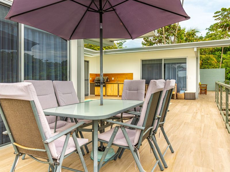 Built in 2018, this modern and intimate home offers 3 bedrooms, 3.5 baths, and a grand 360 degree ocean, valley and mountain view, all designed with the best of indoor and outdoor living in mind. Enjoy an evening inside with oversized folding doors wide open so that there is nothing separating you from the most awe inspiring sunset ocean views you have ever seen. Or, kick back on the back veranda and enjoy a endless mountain view while maintaining the privacy you want from your dream coastal abode. You will enjoy crisp and cool air conditioning, high-speed internet, and push-button window treatments throughout the home. Built for entertaining, hosting, or quiet nights in, the owner’s residence is your perfect Pacific Rainforest getaway.