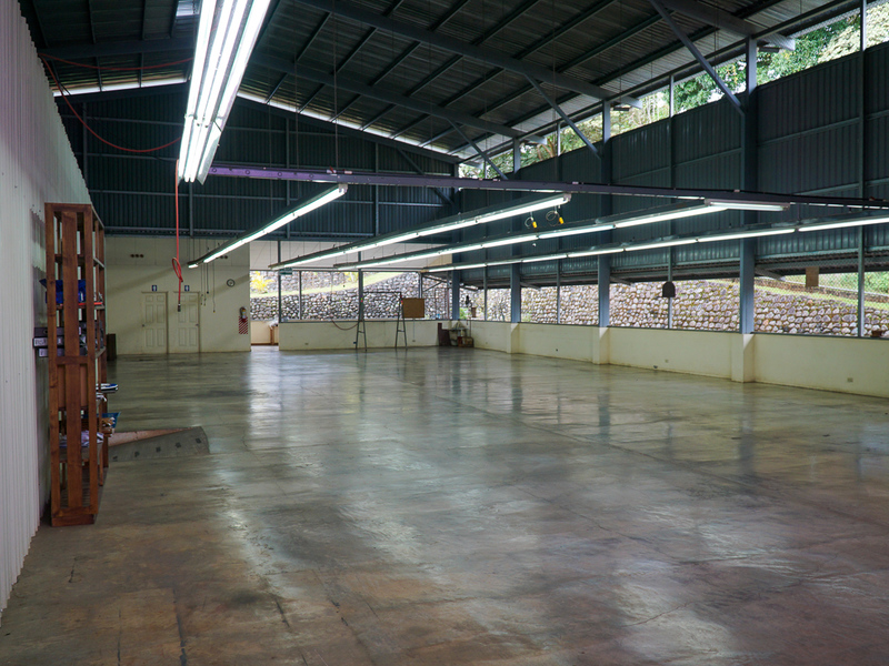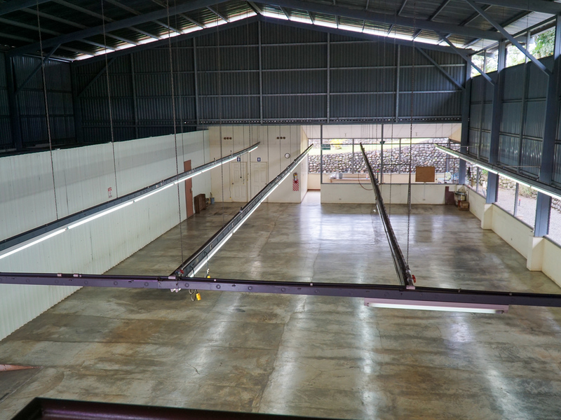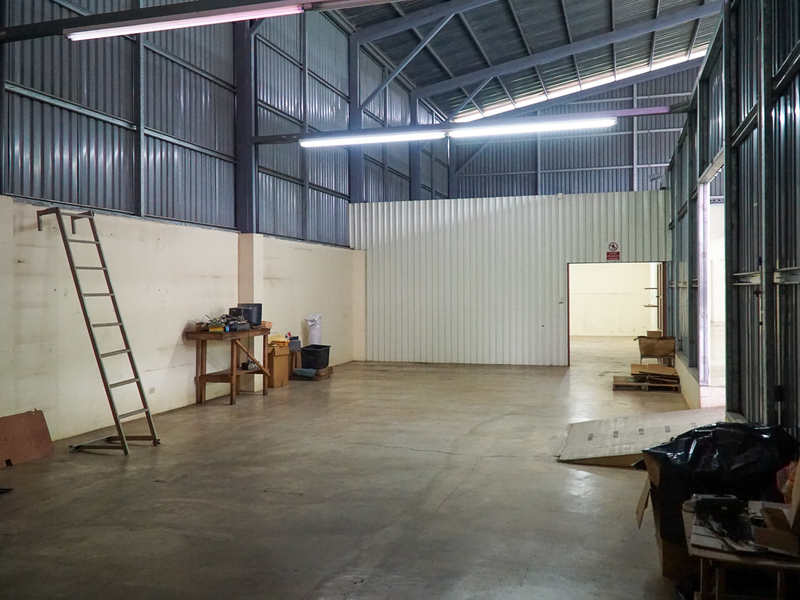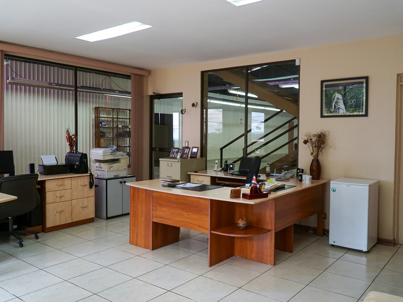 The metal constructed building is 672 square meters in area, with 36 square meters of office space and 24 square meters of cafeteria space. There is a main office/reception and a conference room. There are a total of 4 bathrooms.