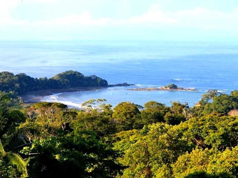 Enjoy the views of the tranquil deep water Bay of Dominicalito from the 7.7 acre exclusive estate sized parcel located in the foothills just south of the quaint surfing village of Dominical.