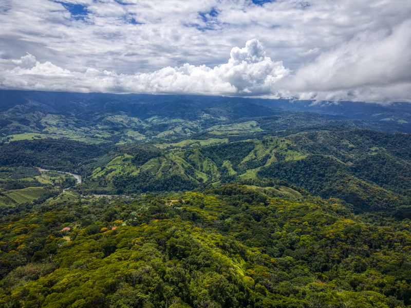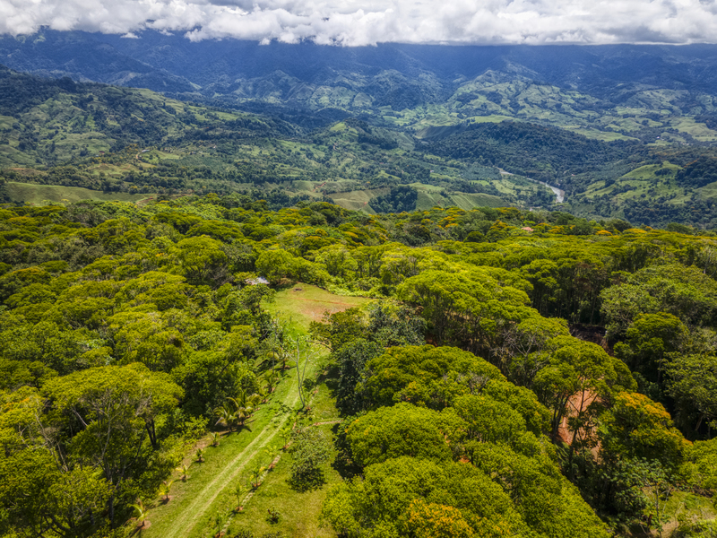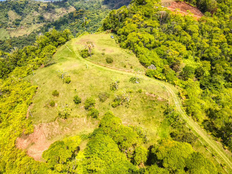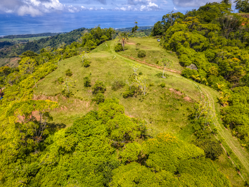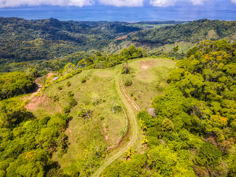 This 10-acre property is located close to the surfing paradise of Playa Dominical on top of a hilltop with magnificent views of the Pacific Ocean, year-round sunsets, and nearby mountains of the South Pacific Coast of Costa Rica.