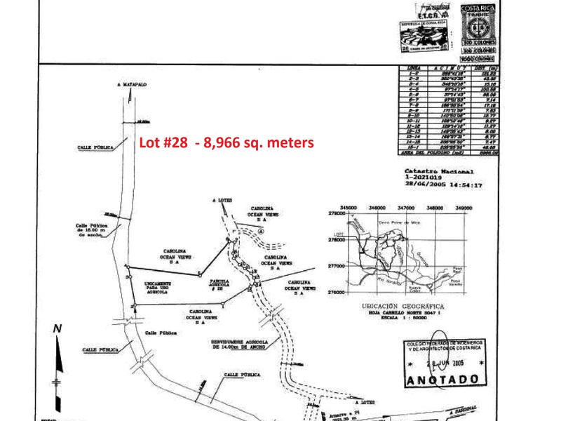 There are two lots available for sale, same owner, in the gated community of Lomas Del Mar. Lomas Del Mar is just 9 kilometers from the main road to Playas Del Coco (paved road) and a short distance to Matapalo Beach where the RIU Spanish Resort is located. This community offers many common area amenities; pool with incredible ocean views, gym, equestrian center, walk, hike for miles on the interior roads (photos of the common areas shown on this site). Build your dream home for retirement or as a vacation home. The two lots are: #28 with 8,966 sq. meters which is over 2 acres for only $29,500 and lot #35 with 5,937 sq. meters for $29,500. These lots are priced at the lowest price per sq. meter for land in a gated community offering amenities and close to the colorful beach community of Playas Del Coco. Seller will offer all three lots for the price of $60,000. This is only $2.98 per sq. meter. Purchase now and land bank - taking advantage of these incredible prices. Highly motivated seller - who paid a great deal more for these lots. Timing is everything, don't wait to tour and purchase a lot or all of them! If you want two lots, make an offer! Full Description Spanish