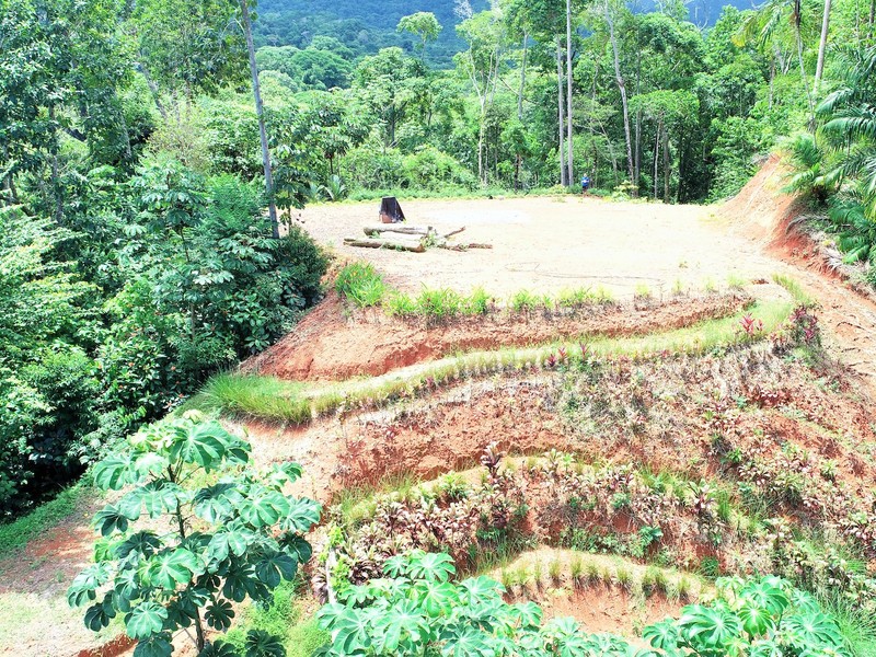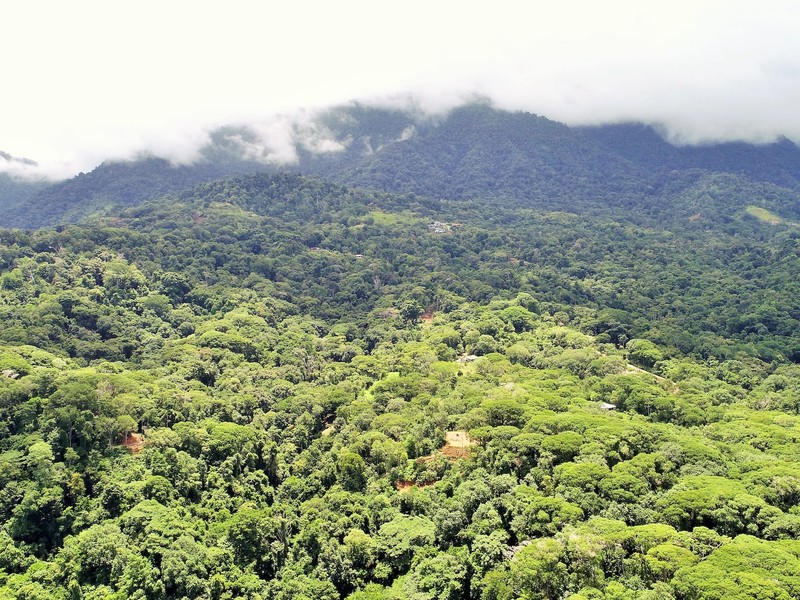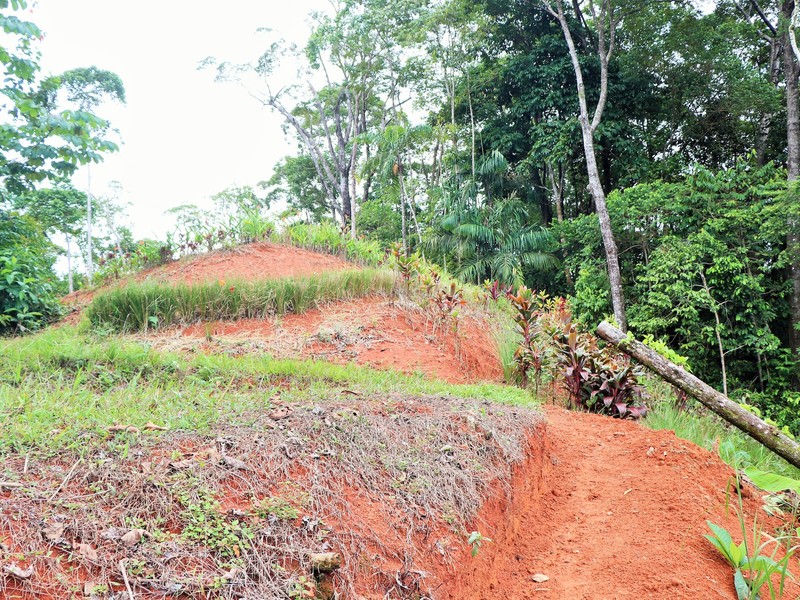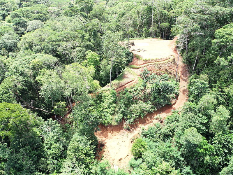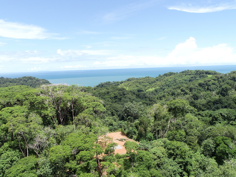 A driveway has been prepared leading up to a private, spacious flat building site that offers both ocean and mountain views. There is a smaller building area below which is perfect for either a guest house, or a mirador rancho to relax in refreshing breezes within this gorgeous jungle setting.