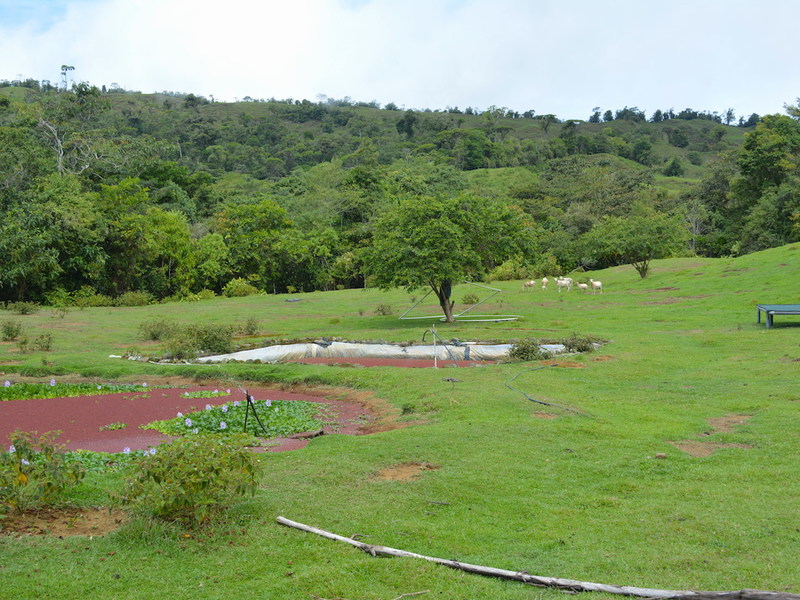 There are fenced pastures and a covered corral. 2 acres of coffee and 2 acres of bananas and plantains. Several mature fruit trees can be found throughout the property. A few cattle, horses and sheep are maintaining the pastures and 2 Tilapia pounds are producing fresh fish.