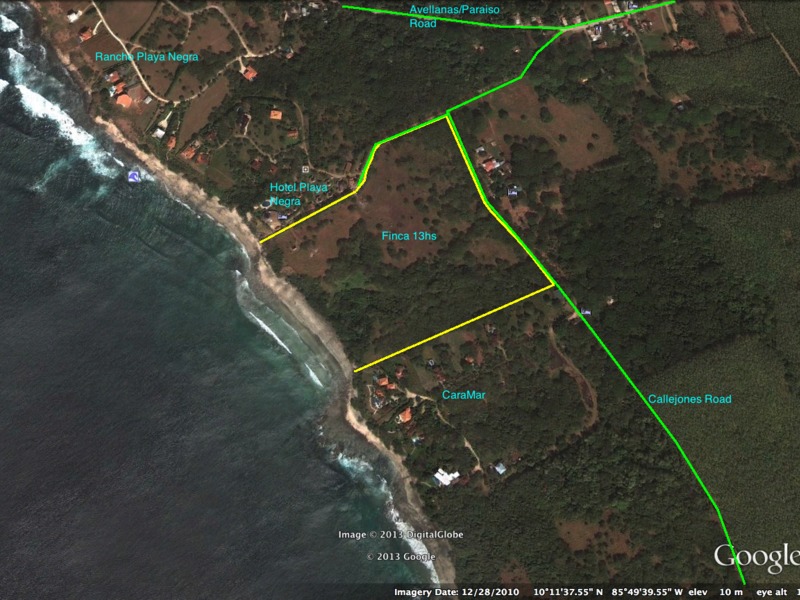 The property has over 1200 linear feet of ocean frontage on a sandy beach. At both the north and south there are rocky outcroppings which highlight the edges of the property. The property also boasts nearly 2000 linear fee of public road frontage. There is public water, a well, electricity, telephone, 3G cel service, and fibre-optic internet available up to 20mb download speed. The beach front parcel just over a mile to the paved road and just over an hour to the Liberia international airport...access is easy from around the world.