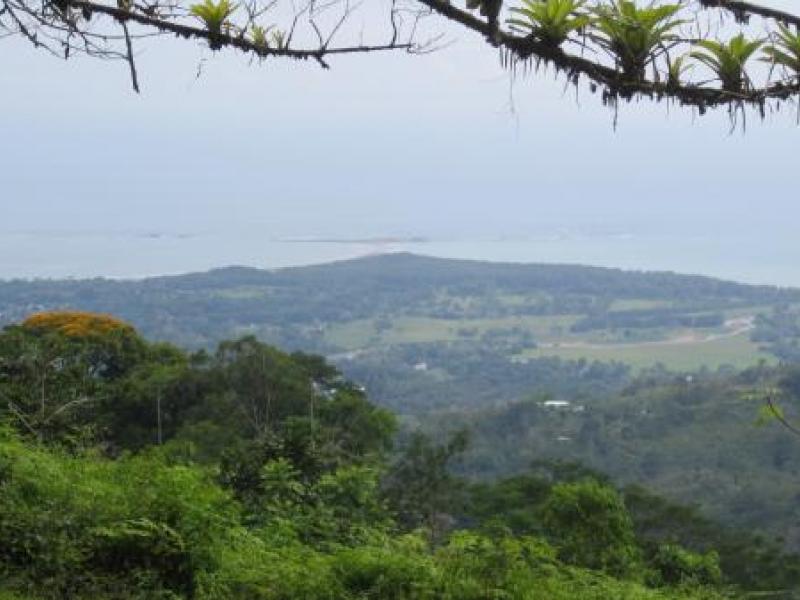 The parcel has gently sloping topography that rises to a high knoll with an epic 360 degree view with a near vertical lush mountainside to the rear, and expansive valley and sea views. There is also an additional terraced site below the main site. You get the feel of a being in a cockpit of an airplane with the way this property is situated at an elevation of approximately 1,400 feet.