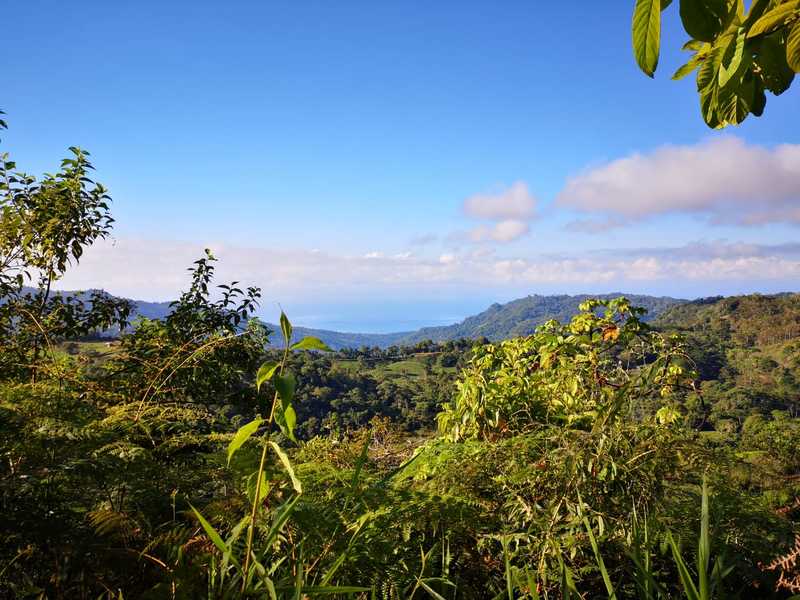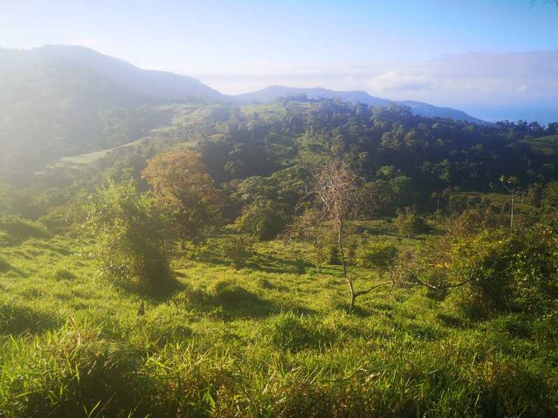 Ceibo Ocean View Farm is a 42 ha farm in the mountains above Uvita, where rolling hills afford stunning views down to the Parque Nacional Marino Ballena and its iconic whale's tail. The farm is 75% pasture with the remainder older growth forest or secondary forest. Two year-round springs supply fresh water to the land while municipal water and electricity run along the public road delineating its southern border. The farm is located near the midpoint between Uvita and San Isdiro de General. Consequently, it is ideally situated for trips to the beach or shopping trips to the superior selection and lower prices of stores in San Isidro Valley.