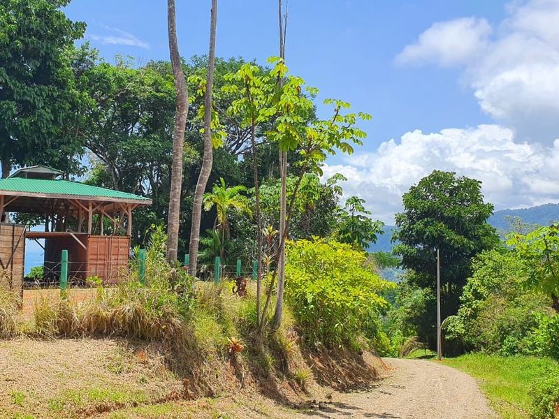 Ideally located on Uvita’s peaceful La Union Road, this large lot delivers a phenomenal ocean view that stretches from the iconic Whale’s Tail all the way to Manuel Antonio. To the east of the property, you’ll enjoy lush mountain and valley views, a dramatic contrast to the dazzling ocean blue in front of you. Two large building pads promise ample space to build both your dream Costa Rica vacation home and a guest house or income-generating vacation rental. A number of large trees on the property attract Scarlet Macaws — don’t be surprised to see these gorgeous birds daily.
