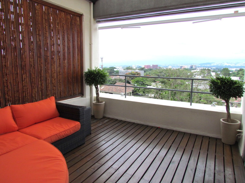 Walking distance to the best shops and restaurants in Escazú and easy access to Route 27, this condominium offers a pool, Jacuzzi, gym, clubhouse with an enormous surrounding terrace with 360° views of the city and the valley. This beautiful apartment has a spacious living room with an open fully equipped kitchen, dining corner, laundry room with brand new washer and dryer, and a spacious covered terrace where you can enjoy an amazing view of the city and mountains. The bedroom has its own bathroom and closets. The apartment is for sale fully furnished and equipped. Recently remodeled, there is a wooden floor in the living room, and laminate in the bedroom. All the furniture and closets are in cedar. The furniture is very good quality, from Altea and Bali. The entire apartment is really bright thanks to the big windows, which open onto the city. Tenant already in place, good investment opportunity. Call us today to see this exceptional apartment!