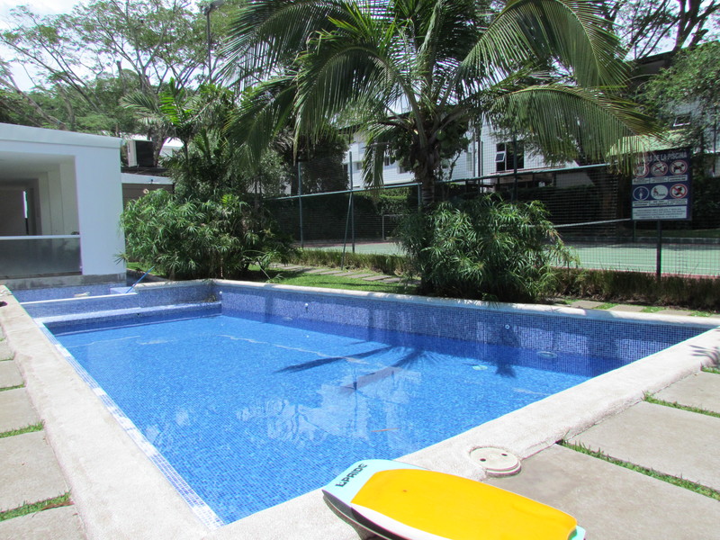 For Sale Apartment in Santa Ana, 1Br, 1.5B, in Gated Community. One Bedroom Apartment of 87m2 Living Area with Bathroom, Walk-In Closet, and an Auxiliary Closet, as well as a guest bathroom in the entrance, It also has 3 parking spaces. The condo has a large landscape with lots of nature which gives it a pleasant atmosphere. The apartment has: • Bamboo floor throughout the apartment • Spanish kitchen cabinets * Air conditioning in the room • 3 parking spaces • 87 square meters of living space • Low maintenance fee • Tennis court • Climatized pool. • Clubhouse and Barbecue area. • Play.