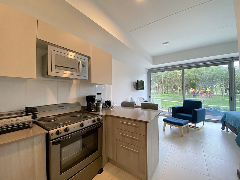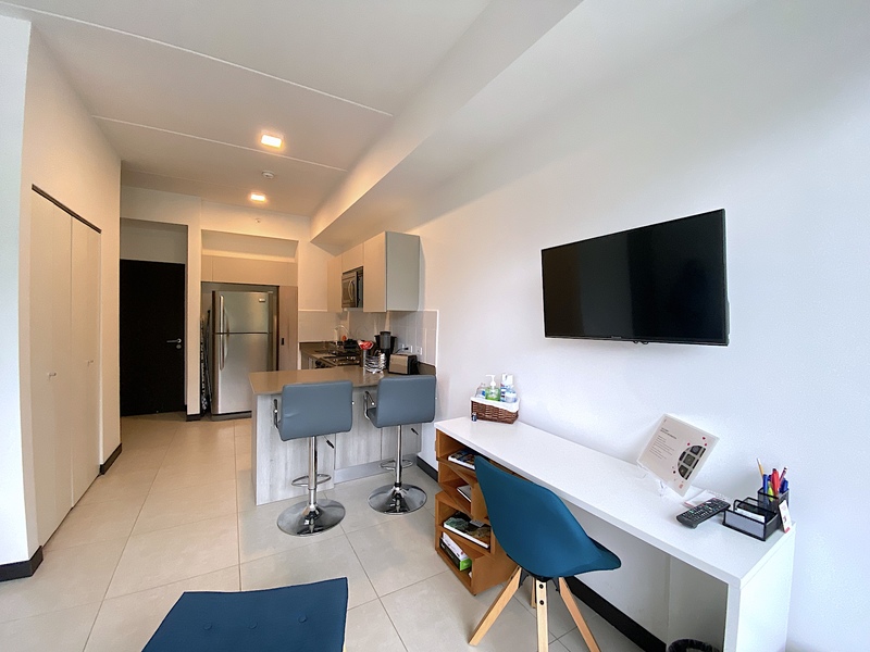 Alquiler en Rohrmoser Luxury Studio Apartment With Views Estudio totalmente amueblado y bien equipado en una zona de fácil acceso y muy exclusiva y segura. Ubicado en el corazón de Romohrser, San José. Costa Rica. Incluye cuota de mantenimiento, . A poca distancia de supermercados, bancos, cafetería, restaurantes y droguería. Espacio de estacionamiento para un vehículo. Alquiler $850. Llame Ya!!