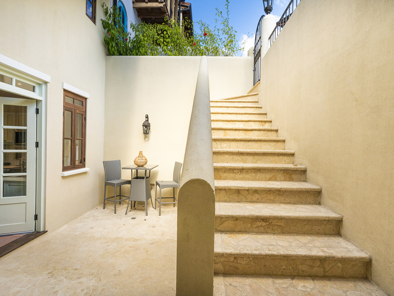 Extra amenities include a private patio with dining bar, lounge area, fully equipped kitchen with dishwasher, plus a pullout sofa bed in the living room, patio with intimate plunge pool, lounge area and a full bath, shower.