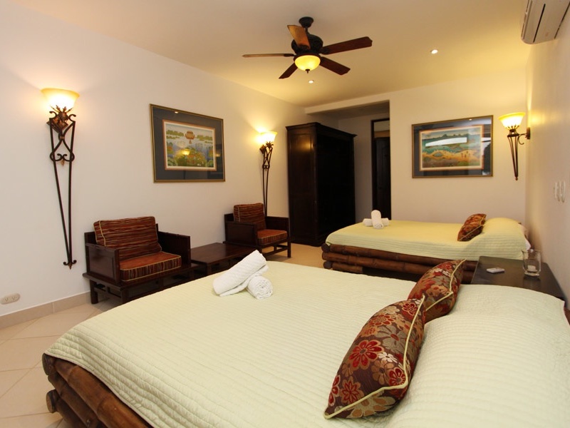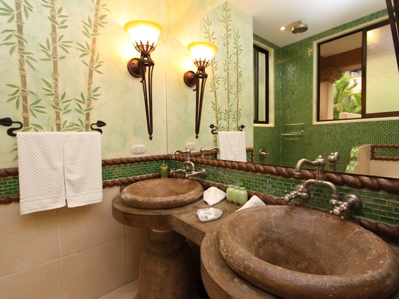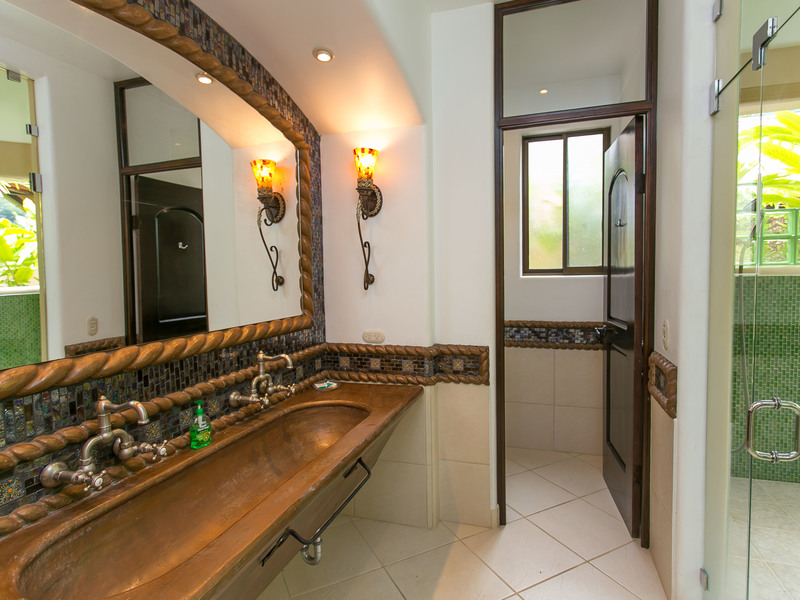 To the South of the Main Villa you discover the two Guest Villas. Each Villa has four bedrooms, two 700 sq ft junior suites on the ground level and two 1,400 sq ft master suites with balconies on the second level. The Ocean view Guest Villa rests at the front of the property overlooking the pool area, with views of the ocean sunsets and rainforest views from all rooms, it is easily accessed from the Main Villa. The jungle view Guest Villa rests back from the Main Villa, privately surrounded by the manicured gardens and primary rainforest. All rooms are equipped with air conditioning and ceiling fans, finished with porcelain tile, stone sinks, glass tiled showers and tropical detailing.