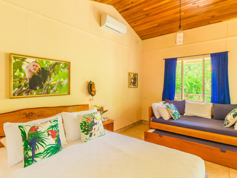 And of course, guests will be delighted at all of the nature and wildlife that greet them at every turn here in Costa Rica! Toucans, orioles, dacnis, euphonia, hawks, hummingbirds and so many more birds can be seen on the property just about every day – in fact, the owners have documented over 135 different species of birds seen here. And, you can see iguanas, Jesus Christ Lizards (they walk on water), squirrels, turtles and more - even the occasional anteater and monkey. The nearby Playa Tortuga is a famous turtle nesting beach, and guests can watch baby turtles being released into the ocean by the local turtle reserve! Just 15 minutes north is the renowned Whale's Tail formation that is part of the Marino Ballena National Park, where humpback whales come every year to give birth and raise their calves in the warm Pacific waters. Guests can enjoy whale-watching tours nine months out of the year, go snorkeling or scuba diving at Caño Island, take a boat tour of the nearby mangroves, rappel down waterfalls, go horseback riding, speed through the jungle on one of the best zip lines in Costa Rica, go on an ATV jungle and beach tour, or take a day trip to nearby Corcovado National Park, which has been called the most biodiverse place on Earth by National Geographic! There is so much to do nearby! A true nature lover's paradise!