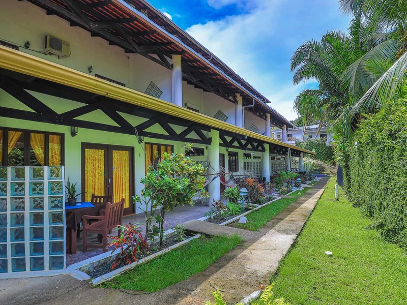 The main structure is a three-story building with the lowest floor offering a total of four, two-bedroom, one-bathroom garden villas. These garden villas are spacious, great values as they can sleep up to 6 people, and are popular with families and smaller groups who take advantage of the great value. The ground and pool front villas, of which there is an additional 4, are large split level studios as well, each with a full kitchen and either an option sunken den and patio OR they are currently set up with dual sleeping areas to maximize capacity. These options have direct pool and garden access out of one side and spacious private balconies on the other side. The top level of the project is home to two, large 2 bedroom condos, each with beautiful mountain and rainforest views, vaulted ceilings, spacious covered private terraces on both sides, fully equipped kitchen living and dining areas. The grounds are spacious, impeccably maintained and there are just endless options here to manage, sublet the restaurant, run the entire complex like a hotel or purchase, sell-off individual condos and retain a lucrative management and operations element.