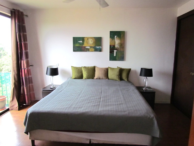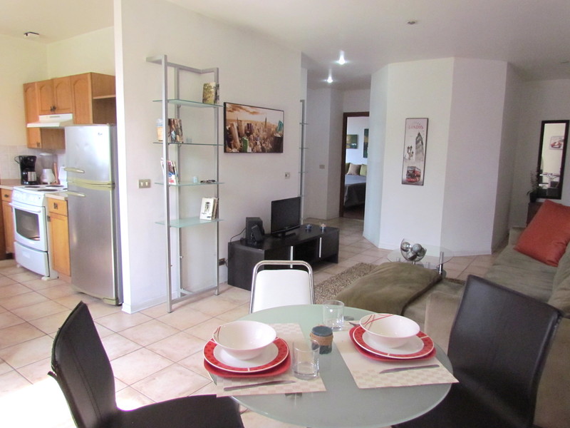 Located on a quiet and safe dead end street in San Rafael in Escazú; just a few minutes from the supermarkets, banks, commercial centers and all amenities and with a direct access to the Route 27. The condominium offers a nice pool, clubhouse with barbecue area, playground and 24/7 security. The apartment features a nice living room with dining room and open kitchen. The kitchen is fully equipped, has 2 large refrigerators, breakfast area and views of the city. There is also a laundry room with washer/dryer. The main bedroom has a king size bed, a balcony, private bathroom and huge closets. The other bedroom also has a large closet and the 2nd bathroom is in front of it. The entire apartment has nice views of the city, has a great lay out and is very functional. Fully equipped, you just need to bring your luggage! Located on the 3rd floor, no elevator. Call now for a private visit.