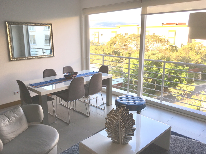 For SALE, exclusive contemporary apartment in Distrito 4, San Rafael de Escazú. It consists of 2 bedrooms one with walk-in closet, both with private bathroom, 1 half bathroom, Euromobilia kitchen, balcony which offers beautiful common grounds views. A condo with lots of natural light, sound proof glass windows, perfect distribution for entertaining. Includes air conditioning, stove/oven, shades and blackouts. A residential area that offers the finest finishes in the Lobby and social areas, two elevators, a clubhouse, fitness center, swimming pools, BBQ area, 24 hour security; Just a few steps away from super markets, restaurants, farmacy, coffee shops, etc...; and easy access to route 27. You will find elegance, distinction and comfort in one place... OPPORTUNITY PRICE.... Make an appointment now!!!
