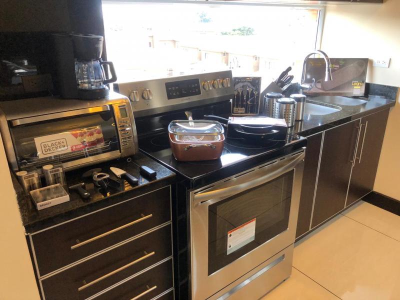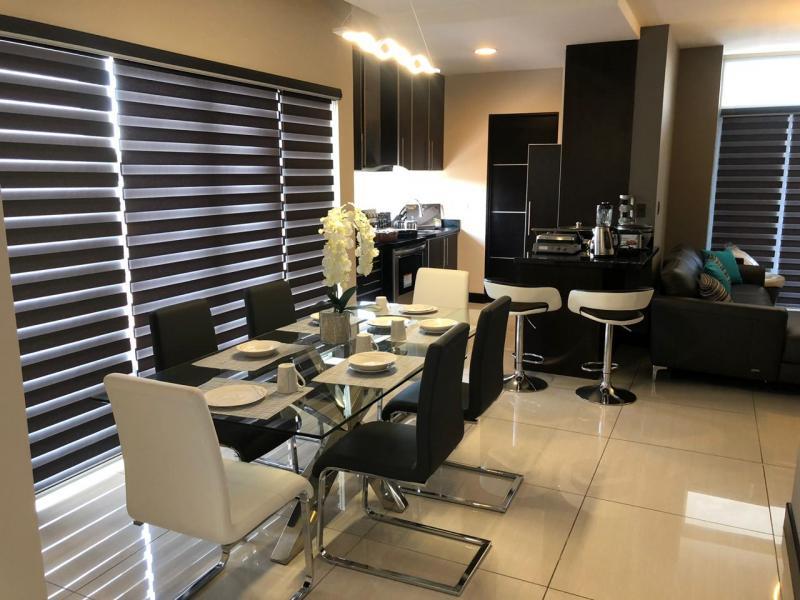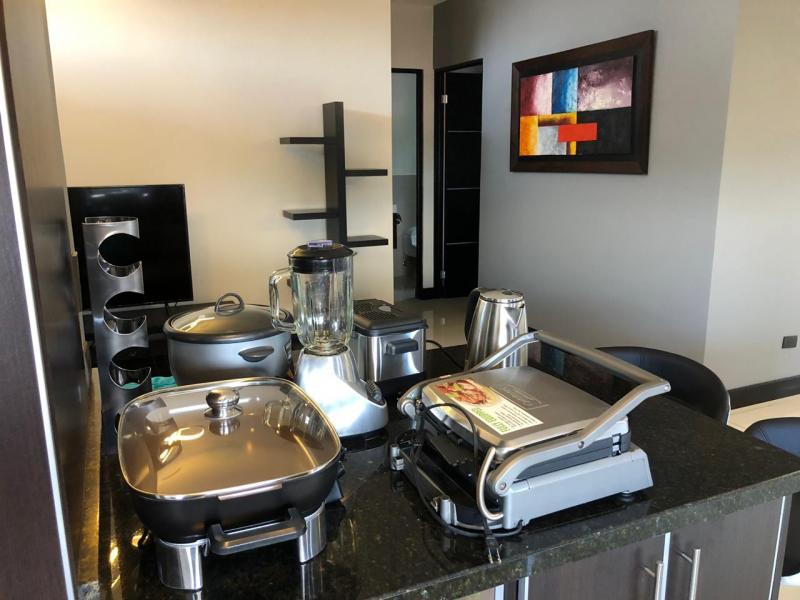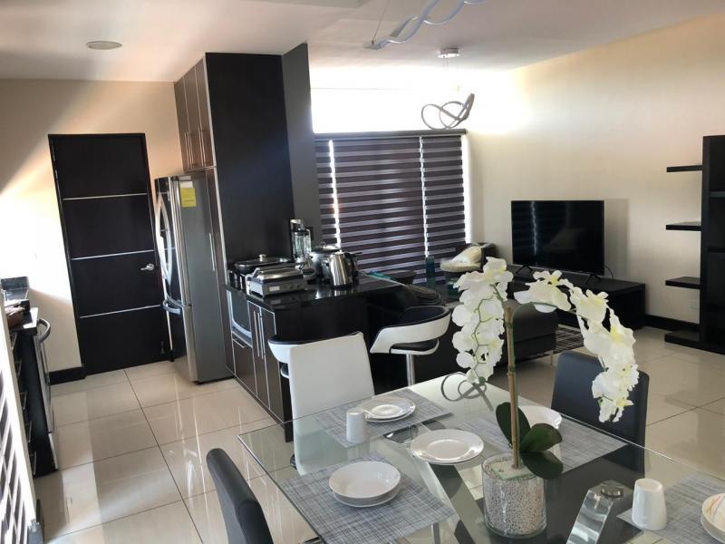 Apartamento de lujo totalmente amueblado para alquiler 4 piso. The apartment has an integrated kitchen-dining room area, with porcelain floors, Euromobilia-style kitchen furniture, granite countertops, luxury furniture, brand new and all the appliances and complete kitchen accessories. The master bedroom has a private bathroom, walking closet, king size bed, linens, plasma screen and blackout windows. The second bedroom has a closet, screen, desk and a sofa bed, but it can also be used as a bedroom. The balcony has outdoor furniture and the laundry room is equipped with a high-tech, energy-saving washer and dryer The rental price includes the condominium fee and parking for a large car The condominium includes the use of a BBQ area, 24/7 surveillance, it is close to schools and colleges, shopping centers and easy access by car, bus or similar.
