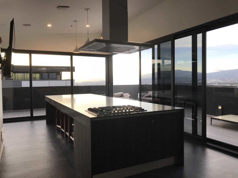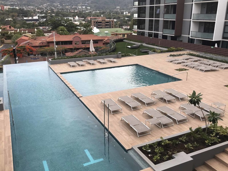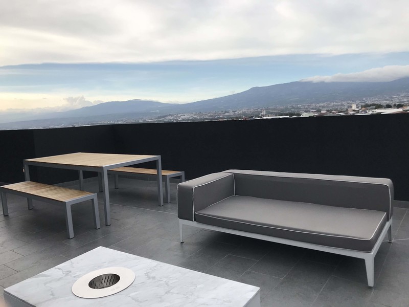 For Rent in Escazu, Modern, New and Exclusive Furnished Apartment, 2B, 2B, 2P with Balcony. Located in a strategic and excellent location with restaurants, shops and more in the same building. In the entrance of Escazu near the highway, near more restaurants, shops, supermarkets and more.
