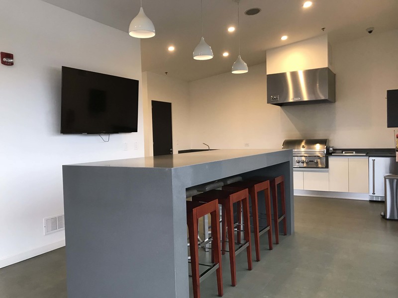 *Kitchen with quartz countertops, good cabinet space. Oven, kitchen and a range hood in stainless steel.
