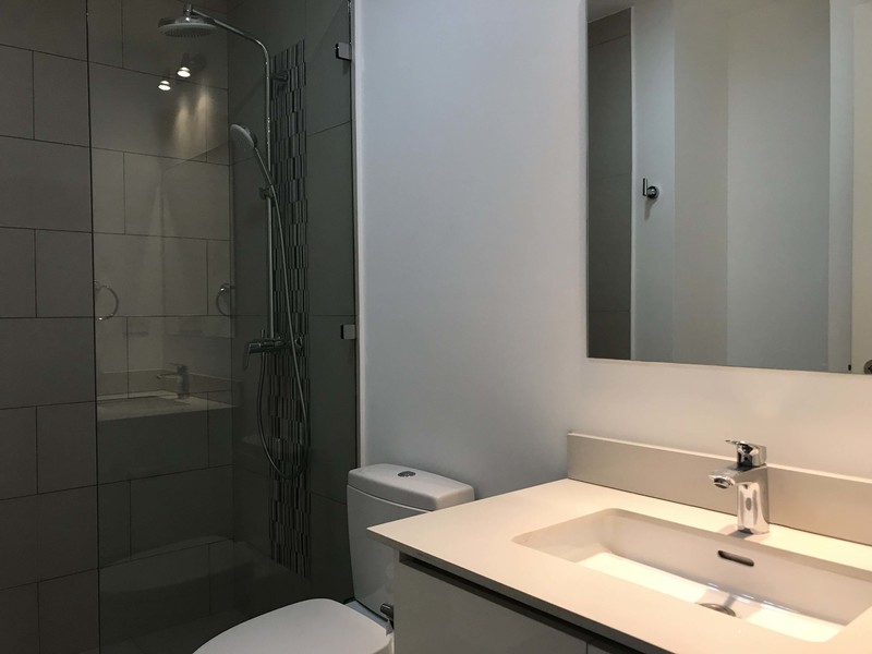 Todo el apartamento tiene acabados contemporáneos; pisos laminados; cortinas en todas las ventanas y blackouts en las habitaciones.
