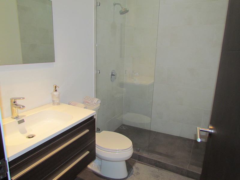 The master bedroom has its private bathroom, walk-in closet and 17m2 terrace. The other bedroom has closets and a bathroom next door. Two parking spaces and a storage unit come with the property. This apartment is for rent without appliances and unfurnished at $1,700/month. A similar but bigger apartment with tv corner is also available at $1,800 in the condominium. Call us today to discover this combination of elegance, convenience and comfort.