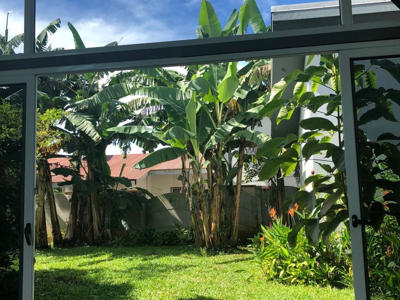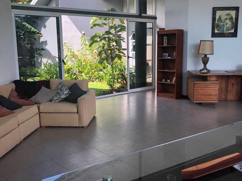 The house is on one floor, it has two large bedrooms, the main one with a walk-in closet. The dining room area is large, well lit and with excellent ventilation, the kitchen with modern furniture is integrated into the living room. At the entrance of the house we have a garage for two vehicles and a small hall. It enjoys a green area with beautiful gardens around the house which makes it very cozy. The place is very beautiful and safe for sports or just walking. The rent includes the maintenance fee.